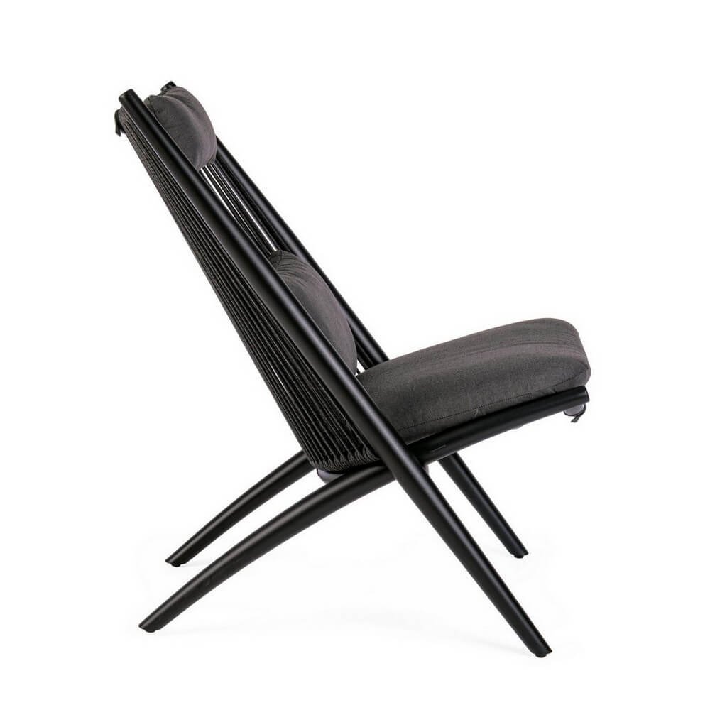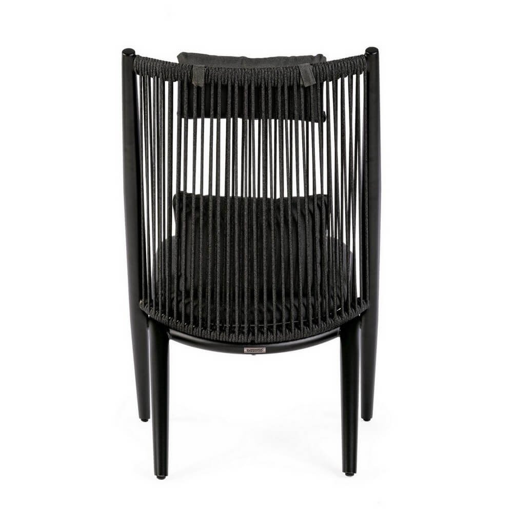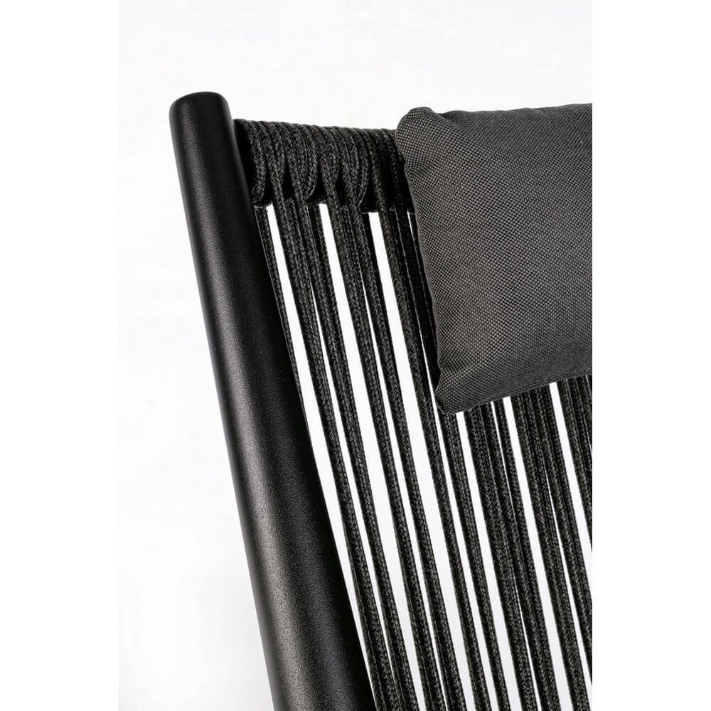 Struttura in alluminio verniciato a polvere (poliestere), intreccio con corde in poliestere (idrorepellenti, resistenti raggi uv). cuscini sfoderabili in tessuto idrorepellente poliestere (280gr/m2). da assemblare.