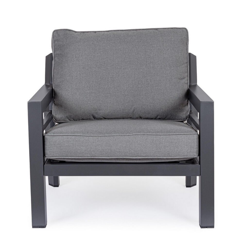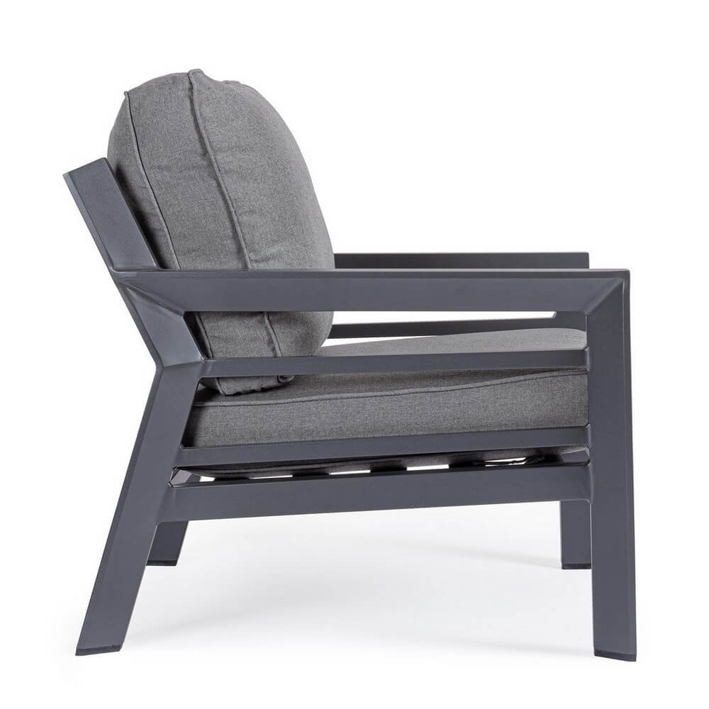 Il Set 2 Poltrone da Giardino Alluminio Antracite Moderno – FREEDOM è la soluzione ideale per chi desidera arredare l’outdoor con stile contemporaneo e comfort durevole. Caratterizzate da linee pulite e un design essenziale, queste poltrone da giardino combinano perfettamente estetica moderna e funzionalità grazie alla struttura in alluminio verniciato a polvere poliestere, robusta e resistente agli agenti atmosferici. Il colore antracite dona un’eleganza discreta e versatile, facilmente abbinabile a diversi contesti arredativi, dal patio raffinato alla terrazza dallo stile minimal. I cuscini imbottiti, sfoderabili e rivestiti in morbido tessuto 100% poliestere, assicurano un’elevata comodità anche nei lunghi momenti di relax, mentre i piedini regolabili e la viteria in acciaio inox completano il prodotto con dettagli di qualità che garantiscono stabilità e durata. Il set FREEDOM, da assemblare, è pensato per valorizzare gli spazi esterni con una presenza sobria e contemporanea, offrendo una seduta accogliente e rilassante ideale per accompagnare i momenti conviviali o le pause solitarie all’aperto.