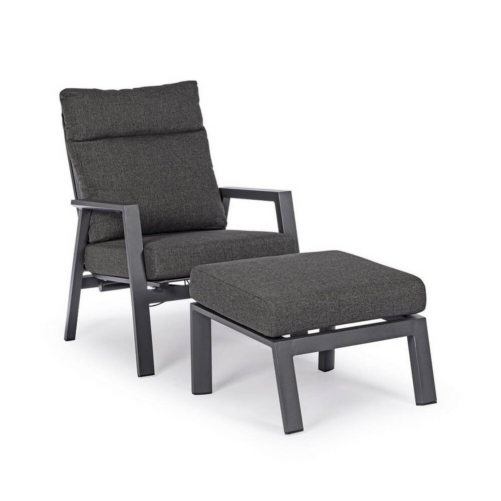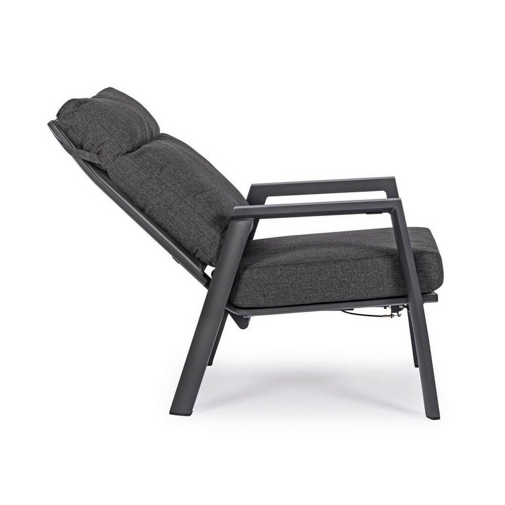 Il Set 2 Poltrone Reclinabili Alluminio Antracite da Esterno – NERISSA unisce design contemporaneo e funzionalità avanzata in un arredo da giardino pensato per chi desidera comfort senza rinunciare allo stile. La struttura in alluminio verniciato a polvere offre solidità e resistenza agli agenti atmosferici, mentre lo schienale reclinabile con posizionamento libero garantisce un relax su misura in ogni momento della giornata. L’elegante rivestimento in tessuto Olefin idrorepellente e i cuscini sfoderabili trasformano queste poltrone in un’oasi accogliente e dal look sofisticato, enfatizzata dalla finitura antracite sobria e versatile. La seduta in textilene 1×1 assicura traspirabilità e comfort nelle giornate più calde, rendendo questo set perfetto per accompagnare momenti di convivialità o relax, sia su una terrazza moderna che in un giardino arredato con gusto. Grazie alla viteria in acciaio inox e ai materiali di alta qualità, il Set NERISSA garantisce durata e praticità nell’uso quotidiano. Ideale per arredare con eleganza e funzionalità gli spazi esterni, offre un’esperienza di benessere autentico, all’insegna del comfort raffinato.