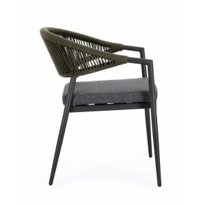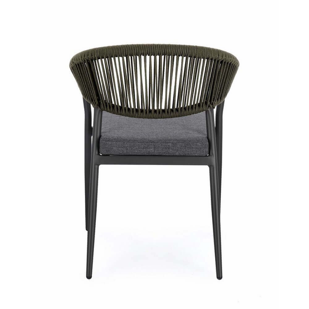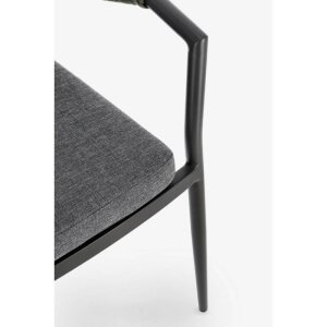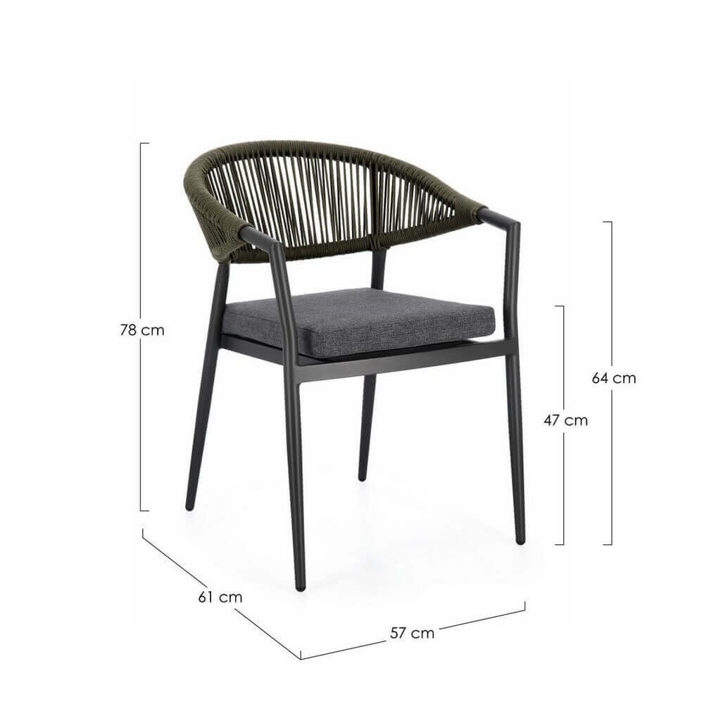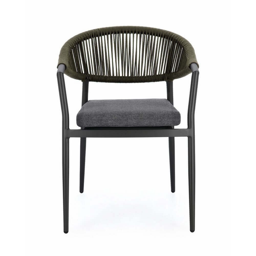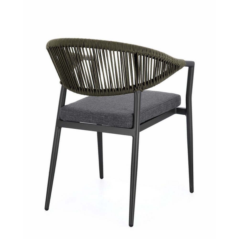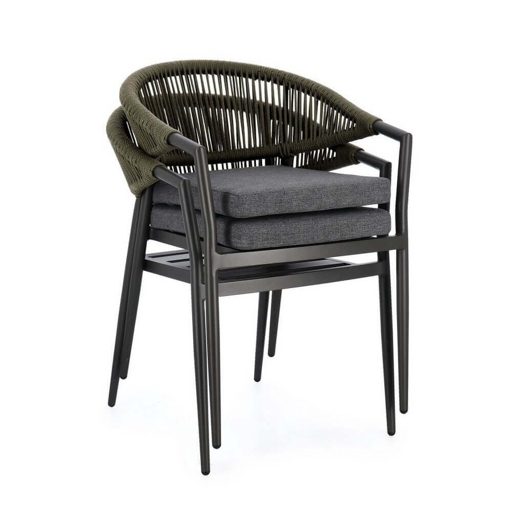 Il Set 4 Sedie con Braccioli Alluminio Verde Moderne da Esterno – KAELIS è la scelta ideale per chi desidera arredare il proprio spazio outdoor con stile contemporaneo e materiali di alta qualità. Queste sedie da giardino combinano un’estetica elegante con funzionalità avanzata: la struttura leggera in alluminio verniciato a polvere garantisce resistenza agli agenti atmosferici e durabilità nel tempo, mentre l’intreccio in corda olefin verde dona un tocco sofisticato e naturale che si armonizza perfettamente con l’ambiente esterno. Il cuscino grigio, sfoderabile e realizzato in tessuto idrorepellente, assicura comfort anche durante un uso prolungato. Il design ergonomico con braccioli avvolgenti accentua la sensazione di accoglienza, senza rinunciare a un’estetica moderna ed essenziale. La funzionalità impilabile rende questo set pratico e facile da riporre, ideale per terrazzi, verande, patio o giardini dal gusto raffinato. Il Set KAELIS esprime al meglio il suo valore in contesti conviviali all’aperto, valorizzando momenti di relax e ospitalità con stile e comodità.