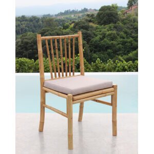La sedia da giardino in bamboo LIBRE è la scelta ideale per chi desidera arredare gli spazi esterni con stile naturale e raffinato. Realizzata interamente in bambù, materiale ecologico e resistente, questa sedia unisce la solidità della struttura alla leggerezza estetica tipica dell’arredo tropicale. Il design semplice ma elegante è impreziosito da uno schienale con listelli verticali irregolari che richiama uno stile boho-chic, perfettamente in linea con le tendenze dell’arredo outdoor. Il cuscino in poliestere di colore grigio chiaro offre una seduta confortevole, rendendo la sedia LIBRE perfetta per lunghe conversazioni in terrazzo, sotto un pergolato o nel verde di un giardino. Le tonalità naturali del bambù, in un caldo marrone chiaro, donano un’atmosfera accogliente e rilassante. Le dimensioni compatte (cm 48 x 48 x 45/85 h) la rendono facilmente collocabile anche in spazi ridotti, valorizzando con semplicità ogni zona living all’aperto. Ideale per chi cerca una sedia da giardino dallo spirito autentico, la sedia da giardino in bamboo LIBRE dona il meglio di sé nei momenti conviviali all’aria aperta, tra comfort e naturale eleganza.