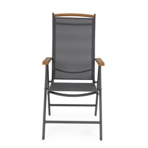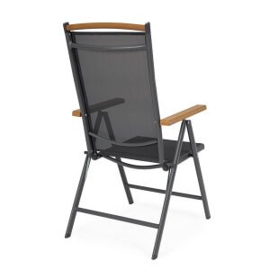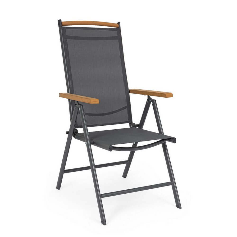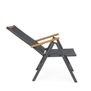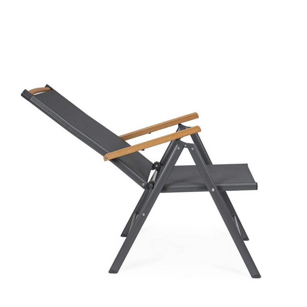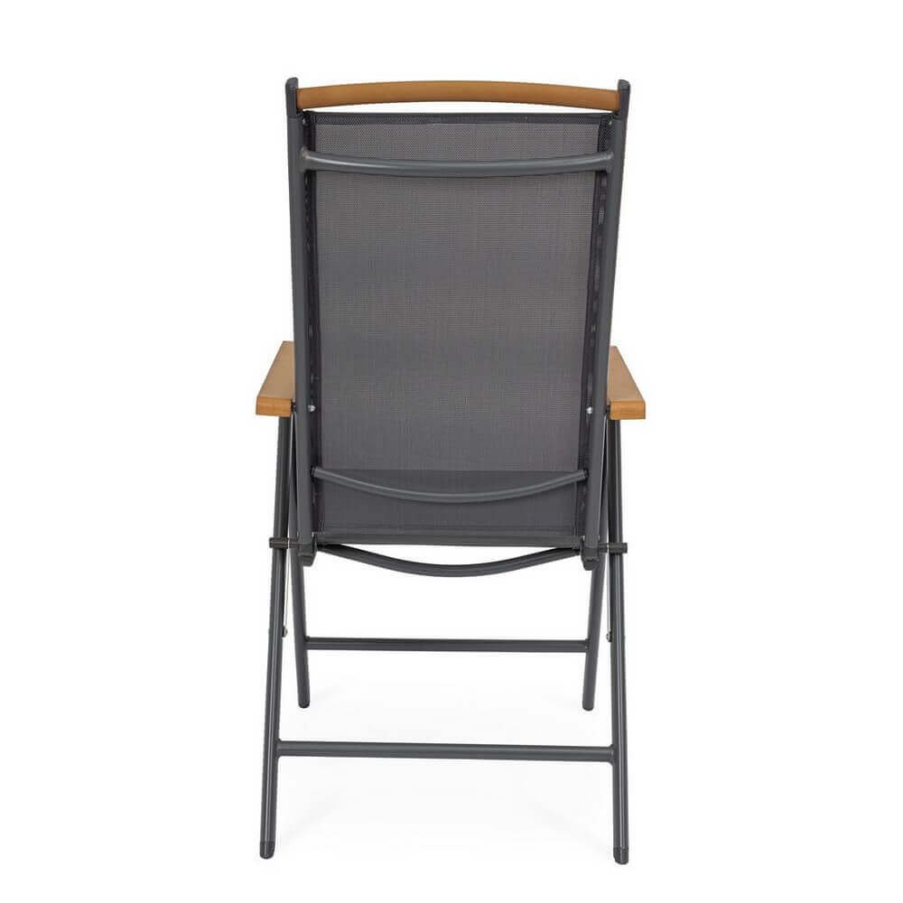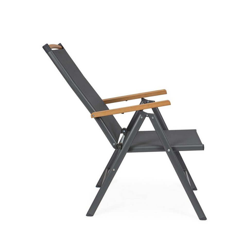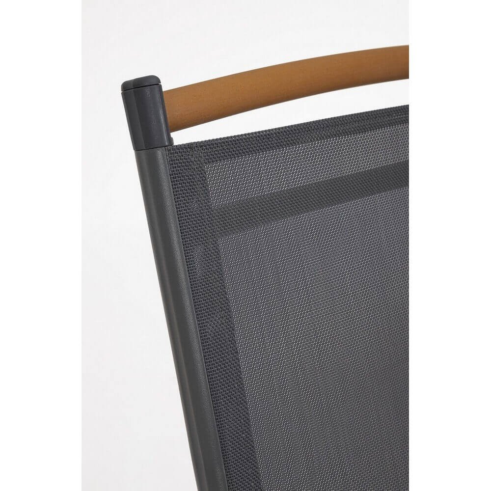 Il Set 4 Sedie Reclinabili Alluminio Grigio Scuro da Esterno – VALCRIS rappresenta una soluzione raffinata ed efficiente per arredare con stile qualsiasi spazio outdoor, dal giardino al terrazzo. La struttura in alluminio verniciato a polvere assicura leggerezza, resistenza alla ruggine e durata nel tempo, mentre la seduta e lo schienale in textilene 2×1 garantiscono un comfort traspirante e un’ottima resa estetica. L’elegante finitura grigio scuro dona un tocco moderno e sofisticato, esaltato dagli inserti in polywood effetto legno presenti sui braccioli e sulla barra superiore dello schienale, che richiamano il calore dei materiali naturali senza rinunciare alla praticità. Le sedie VALCRIS sono reclinabili in 7 posizioni e completamente pieghevoli, perfette per ottimizzare lo spazio nei momenti di inutilizzo e adattarsi alle diverse esigenze di relax. Ideali per un arredo giardino dallo stile contemporaneo, queste sedie combinano estetica e funzionalità, assicurando massimo benessere nella vita all’aria aperta. Sia per un pranzo in veranda che per un momento di lettura al sole, questo set trasforma ogni occasione in un’esperienza di comfort elegante.
