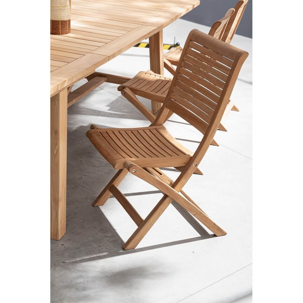 Il Set 2 Sedie Pieghevoli Teak Marrone da Esterno – CHARMING è la scelta ideale per chi desidera arredare con eleganza e praticità uno spazio outdoor, come giardini, terrazze o verande. Realizzate in legno di teak di classe A, proveniente da foreste sostenibili certificate SVLK, queste sedie garantiscono una qualità superiore e resistenza agli agenti atmosferici, unita a una finitura raffinata dal caldo tono marrone naturale. Il design essenziale ma curato, con doghe orizzontali leggermente ricurve che seguono l’ergonomia del corpo, offre una seduta comoda e rilassata, perfetta per pranzi all’aperto o momenti di relax. La struttura pieghevole consente di riporle facilmente quando non in uso, rendendole ideali anche per spazi ridotti. La ferramenta in acciaio galvanizzato assicura ulteriore durata nel tempo. Lo stile sobrio ma sofisticato del set CHARMING si abbina perfettamente ad arredi da giardino in legno o materiali naturali, creando un’atmosfera accogliente e senza tempo. Questo set esprime il meglio di sé in contesti outdoor vissuti con gusto, comfort e naturalezza.