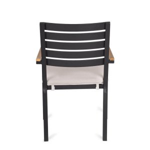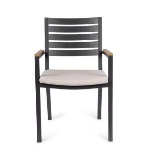 Il Set 4 Sedie con Braccioli Alluminio Antracite da Esterno – CARMEYA rappresenta la sintesi perfetta tra design contemporaneo e funzionalità, pensato per valorizzare ogni spazio outdoor con eleganza e comfort. La struttura in alluminio verniciato a polvere colore antracite dona resistenza agli agenti atmosferici e leggerezza, mantenendo un’estetica raffinata e moderna. I cuscini sfoderabili in tessuto idrorepellente, dal colore neutro e luminoso, assicurano una seduta confortevole e pratica, ideale per lunghe serate convivali. I braccioli sono arricchiti da inserti con verniciatura effetto legno, un dettaglio distintivo che aggiunge calore visivo e un tocco di naturalezza al profilo essenziale della sedia. Impilabile per un facile stoccaggio, questo set unisce al meglio stile e funzionalità, rendendolo la scelta perfetta per arredare giardini, terrazze o verande moderne. Il design lineare con schienale a doghe orizzontali trasmette una sensazione di leggerezza e ordine, sposandosi perfettamente con ambienti outdoor eleganti e minimalisti. Il Set CARMEYA esprime tutto il suo valore nei momenti all’aperto, offrendo un’esperienza di relax e convivialità senza rinunciare allo stile.