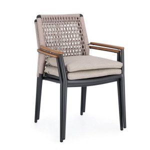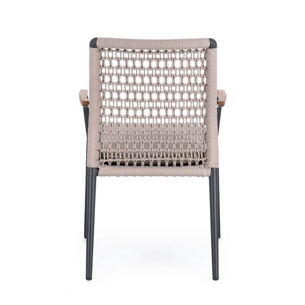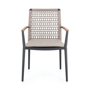 Il Set 4 Sedie con Braccioli in Alluminio Antracite da Esterno – ODELIS rappresenta l’equilibrio perfetto tra design contemporaneo e funzionalità per gli spazi outdoor più raffinati. Queste sedie da giardino esprimono un’eleganza sobria grazie alla struttura in alluminio verniciato a polvere color antracite, che conferisce resistenza agli agenti atmosferici e leggerezza, ideale per l’arredo da esterno. Lo schienale è impreziosito da un raffinato intreccio in corda olefin che dona un tocco artigianale e arioso, mentre i braccioli con inserti in teak aggiungono calore e un dettaglio naturale di grande pregio. Il cuscino sfoderabile, realizzato in tessuto olefin idrorepellente (100% polipropilene), contribuisce al massimo comfort, garantendo al contempo praticità e durata. L’impilabilità delle sedie rende questo set versatile e salvaspazio, perfetto per arredare con stile terrazze, verande, giardini o aree lounge all’aperto. Il design armonioso della linea ODELIS si abbina facilmente a diversi stili di arredamento outdoor, dal moderno al boho chic, trasformando ogni momento all’aria aperta in un’esperienza di relax sofisticata e accogliente.