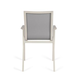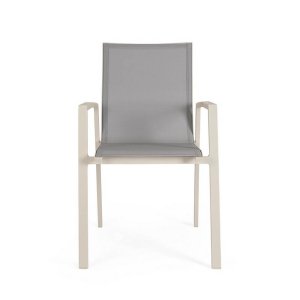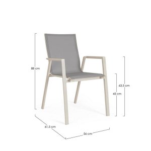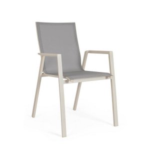 Il Set 4 Sedie con Braccioli Alluminio Beige Moderna da Esterno – MEIRA è la scelta perfetta per chi cerca eleganza funzionale nell’arredo giardino. Caratterizzate da un design contemporaneo e lineare, queste sedie da giardino si distinguono per la struttura in alluminio verniciato a polvere color beige, che garantisce resistenza agli agenti atmosferici e leggerezza, rendendole ideali per l’utilizzo outdoor in terrazze, balconi o bordi piscina. Il rivestimento in textilene 1×1, traspirante e facile da pulire, assicura comfort anche nelle giornate più calde, mentre la forma ergonomica con braccioli integrati sottolinea l’equilibrio tra praticità e stile. Impilabili per una gestione efficiente degli spazi, le sedie MEIRA rappresentano un complemento versatile e raffinato, perfettamente in linea con ambienti moderni e curati. La loro estetica minimalista, unita alla qualità dei materiali, trasmette una sensazione di ordine e accoglienza, creando l’atmosfera ideale per momenti di relax e convivialità all’aria aperta.