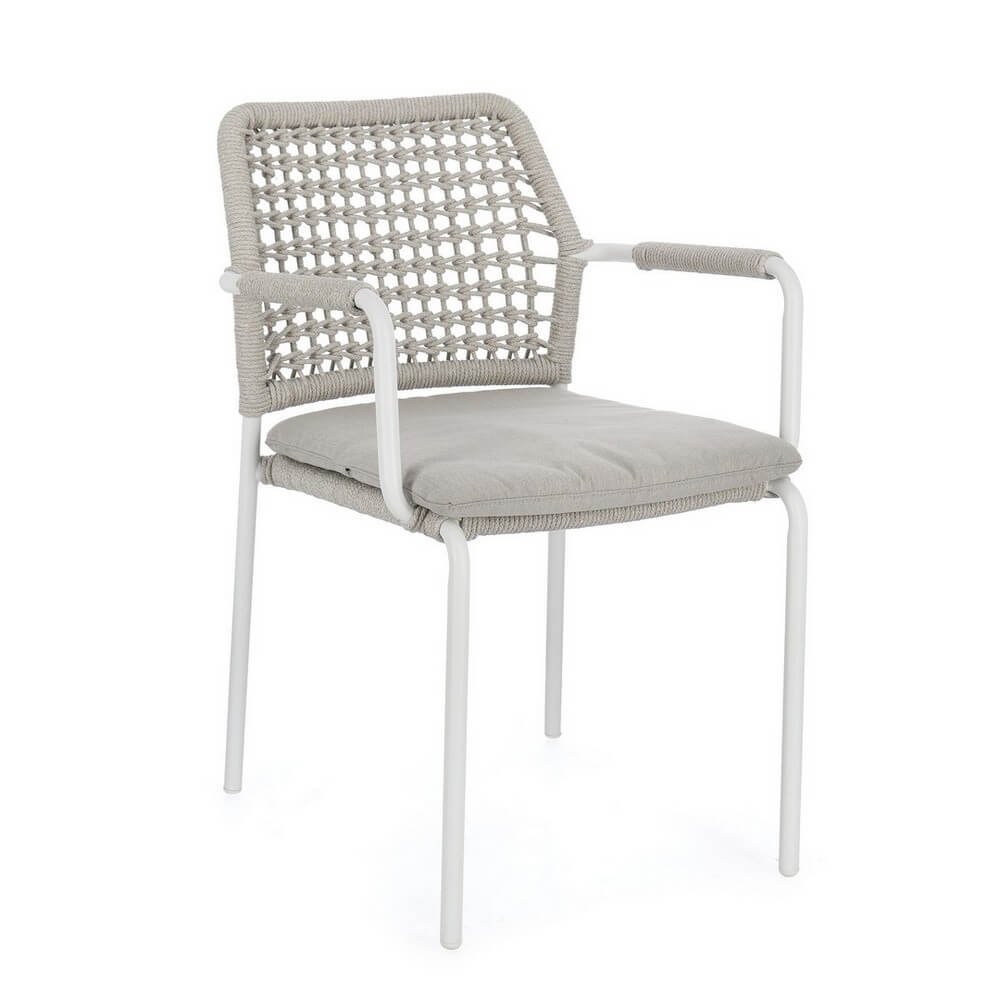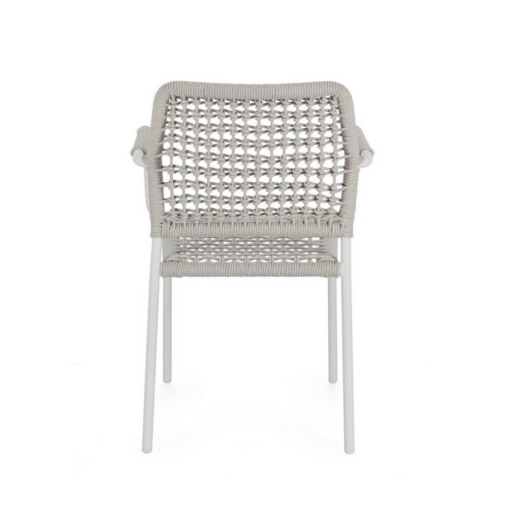 Il Set 4 Sedie con Braccioli in Alluminio Bianco da Esterno – LIOREN è la perfetta sintesi tra estetica contemporanea e funzionalità outdoor. Caratterizzate da una struttura in alluminio verniciata a polvere di poliestere, queste sedie da giardino combinano leggerezza e resistenza agli agenti atmosferici, rendendole ideali per verande, terrazzi e spazi open air. Il design è impreziosito da un raffinato intreccio in corda di poliestere tono su tono, che dona un tocco artigianale e naturale allo stile moderno complessivo. La tonalità bianco opaco della struttura si armonizza perfettamente con il grigio chiaro del rivestimento, evocando freschezza e pulizia visiva. Dotate di braccioli ergonomici e impilabili per un pratico stoccaggio, le sedie LIOREN si distinguono per comfort e versatilità, rappresentando un’eccellente scelta nell’arredo giardino. Che si tratti di un pranzo all’aperto o di un angolo relax al tramonto, questo set valorizza l’atmosfera con un’eleganza discreta e contemporanea.