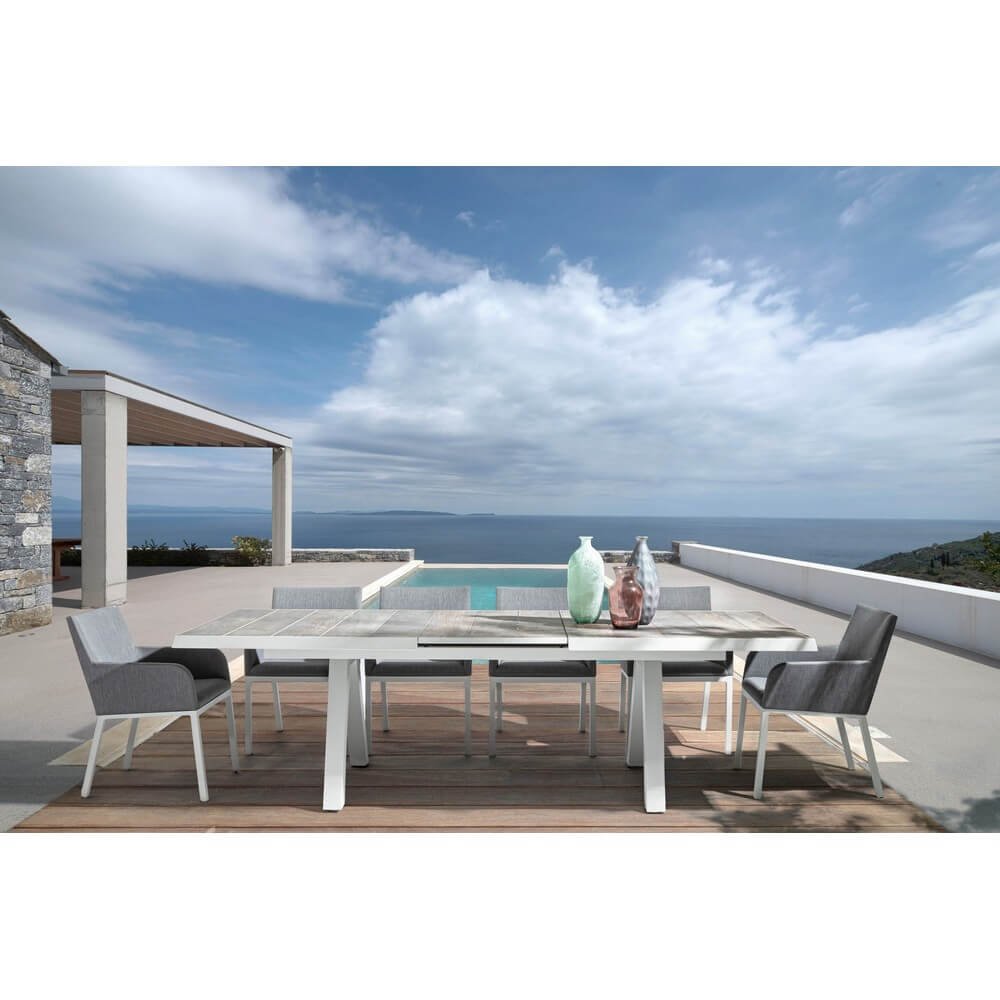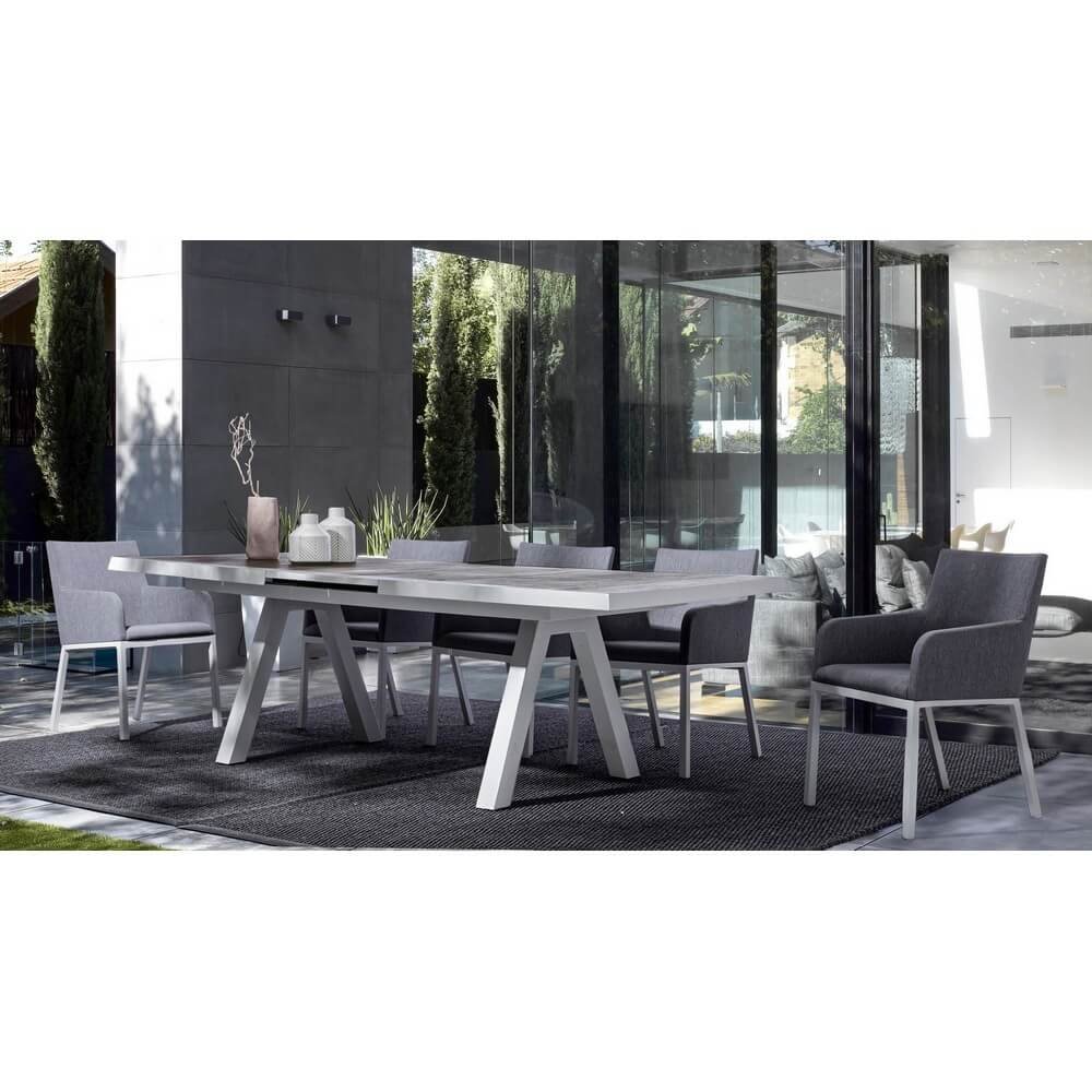 Eleganza moderna e funzionalità si incontrano nel Set 4 Sedie con Braccioli Alluminio Lunar Moderne da Esterno – YOUNG, pensato per valorizzare ogni spazio outdoor con stile contemporaneo e comfort. La struttura in alluminio verniciato a polvere di colore chiaro, resistente agli agenti atmosferici, dialoga perfettamente con il rivestimento grigio lunar in tessuto misto (70% textilene e 30% olefin), dall’aspetto raffinato e dalla piacevole texture al tatto. L’imbottitura fast dry foam assicura una rapida asciugatura anche dopo intemperie, rendendo ogni seduta sempre pronta all’uso. Il design con braccioli integrati e linee pulite esprime una sofisticata sobrietà ideale per arredi da giardino moderni, terrazze eleganti o ambienti contract. Le gambe, da assemblare, completano una struttura solida ma visivamente leggera. Il Set YOUNG è la scelta perfetta per chi desidera sedute da giardino resistenti e curate nei dettagli, capaci di offrire un’esperienza di comfort rilassato in contesti outdoor contemporanei, tra relax e convivialità sofisticata.