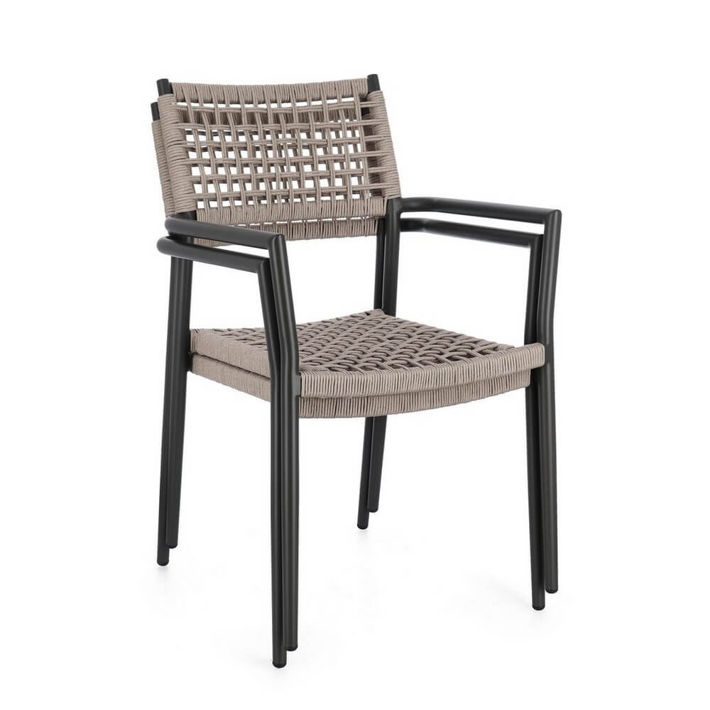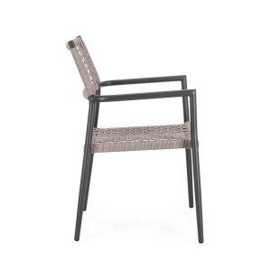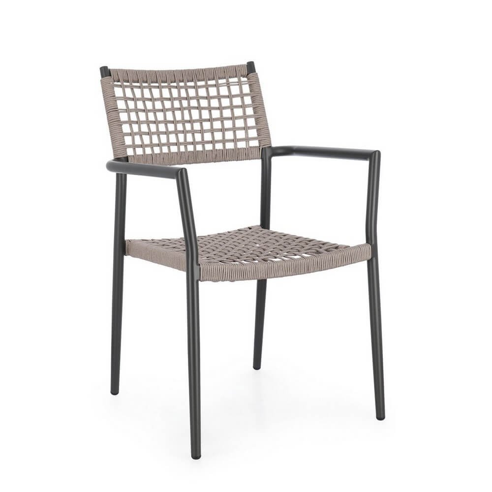 Il Set 4 Sedie con Braccioli Alluminio Marrone Chiaro da Esterno – CAELIS è la scelta ideale per chi desidera arredare con stile contemporaneo ed essenziale gli spazi outdoor. Caratterizzate da una struttura in alluminio verniciata a polvere color antracite, queste sedie da giardino si distinguono per il raffinato contrasto con l’intreccio marrone chiaro in corda di poliestere, pensato specificamente per resistere agli agenti atmosferici. Leggere, maneggevoli e impilabili, coniugano estetica e funzionalità in modo impeccabile. Le linee pulite e il design geometrico dello schienale conferiscono un aspetto arioso e moderno, perfetto per valorizzare ambienti come terrazze, verande, patii o dehors di locali e ristoranti. Il nome CAELIS evoca leggerezza e comfort, elementi che si ritrovano nella piacevole ergonomia della seduta e nei comodi braccioli, perfetti per accompagnare momenti di relax o convivialità all’aperto.