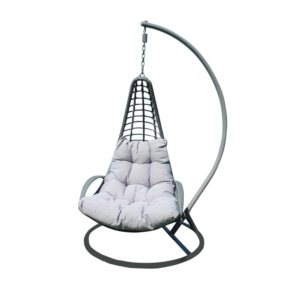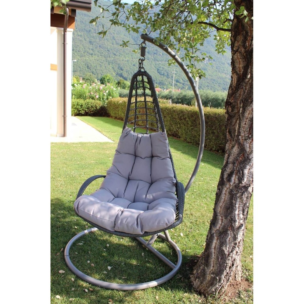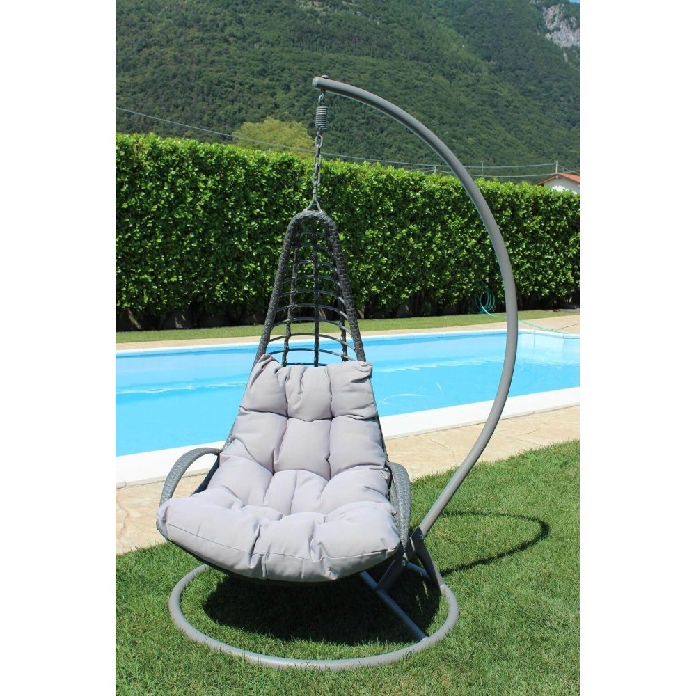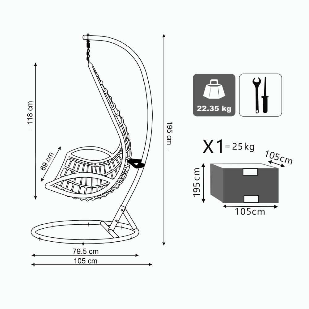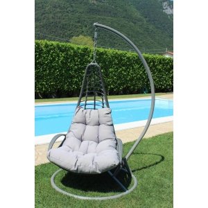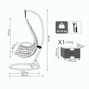 La Poltrona Sospesa da Giardino in Wicker Acciaio cm 105x105x186 – WILLOUGHBY è l’arredo perfetto per trasformare ogni spazio esterno in un angolo esclusivo di benessere e relax. Elegante e contemporanea, questa sedia sospesa si distingue per il suo design sinuoso e avvolgente, che unisce leggerezza visiva e solidità strutturale. Realizzata con una solida struttura in metallo opaco e una seduta intrecciata in resistente wicker grigio scuro, è completata da un ampio cuscino in poliestere idrorepellente da 250 gr, soffice e confortevole, anch’esso in raffinata tonalità grigia. Le generose dimensioni della seduta (84 x 70 x 124 cm) assicurano il massimo comfort, mentre la struttura portante con base rotonda e tubi da 42 mm garantisce stabilità e sicurezza. Ideale per giardini, terrazze o verande, la poltrona sospesa WILLOUGHBY è pensata per chi desidera concedersi un momento di tranquillità all’aria aperta, coccolato da un delicato dondolio. Lo stile moderno con richiami naturali la rende perfetta in contesti di arredo outdoor contemporanei, conferendo un tocco di charme senza tempo.