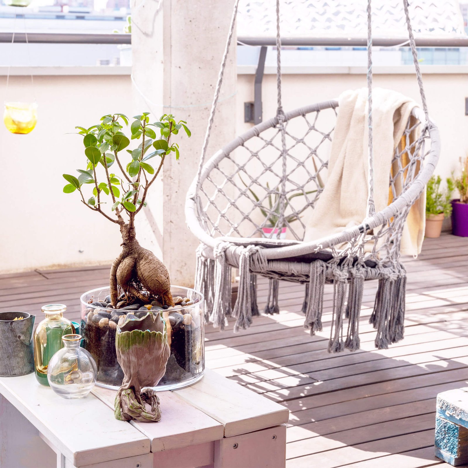 La **Sedia Sospesa Rotonda con cuscino in Metallo cm 80x80x120 – LORENNE** unisce design elegante e funzionalità per trasformare qualsiasi spazio esterno in un angolo di puro relax. Appartenente alla categoria dell’arredo da giardino, questa seduta sospesa si distingue per lo stile boho-chic, con intrecci in corda dal gusto artigianale e una struttura resistente in metallo verniciato, che assicura solidità e durabilità nel tempo. Il colore grigio chiaro dona luminosità e versatilità, adattandosi perfettamente a terrazze, balconi e giardini moderni o dallo stile naturale. Il cuscino imbottito, incluso e abbinato, garantisce comfort e una piacevole sensazione di accoglienza, ideale per momenti di lettura, meditazione o semplice riposo. Con dimensioni generose (Ø 80/60 x 120 h cm) e un design avvolgente, la sedia sospesa LORENNE valorizza ogni ambiente esterno aggiungendo un tocco contemporaneo e rilassante. Perfetta per chi desidera creare un’atmosfera intima e raffinata all’aria aperta, è la scelta ideale per vivere al meglio il proprio spazio outdoor in totale comodità e stile.