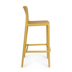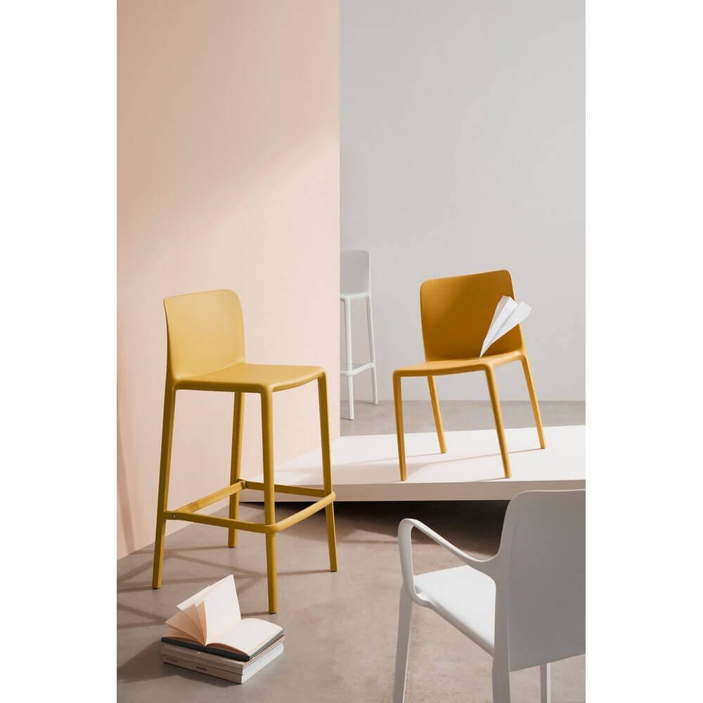 La struttura leggera e la possibilità di impilare più sgabelli lo rendono pratico e salvaspazio, mentre la barra poggiapiedi posteriore da assemblare assicura maggiore stabilità e comfort di seduta.