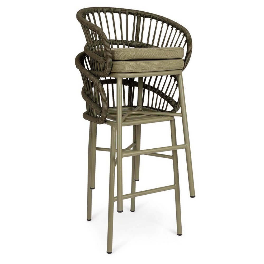 Dai un tocco esclusivo ai tuoi ambienti outdoor con Odivelas, lo sgabello da bar da esterno in alluminio con cuscino, pensato per creare angoli bar eleganti e funzionali nel tuo giardino, terrazzo o veranda.
