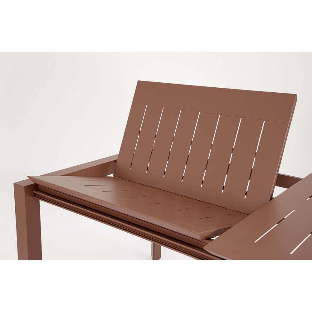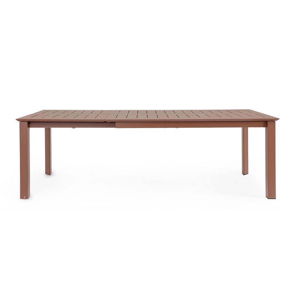 Il Tavolo Allungabile Alluminio Marrone Moderno da Esterno 240 cm – TALMERA è la scelta ideale per chi desidera arredare con eleganza e funzionalità il proprio spazio outdoor. Con il suo design moderno dalle linee pulite e geometriche, questo tavolo da giardino coniuga estetica contemporanea e massima praticità. Realizzato interamente in alluminio verniciato a polvere con finitura marrone opaca, unisce resistenza agli agenti atmosferici e leggerezza, mentre la viteria in acciaio inox garantisce durabilità anche in ambienti umidi o salmastri. Il sistema di apertura telescopica consente un’estensione fluida fino a 240 cm, offrendo spazio extra per ospitare comodamente famiglia e amici. Le gambe essenziali ma robuste, due delle quali dotate di ruote, assicurano stabilità e facilità di spostamento, rendendolo particolarmente adatto a terrazze, verande, giardini e dehor moderni. Il tavolo TALMERA esprime al meglio il suo valore in contesti conviviali all’aperto, dove la qualità dei materiali e lo stile contemporaneo contribuiscono a creare un’atmosfera raffinata e funzionale.