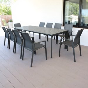 Il Tavolo allungabile da giardino 150/200×100 – UNA è la soluzione perfetta per chi cerca un arredo da esterno pratico, elegante e funzionale. Realizzato interamente in alluminio verniciato color antracite, questo tavolo unisce leggerezza e resistenza agli agenti atmosferici, rendendolo ideale per terrazze, verande o spazi outdoor di ristoranti. Il design moderno dalle linee essenziali e il piano a doghe sottili donano un tocco contemporaneo all’ambiente, mentre la struttura minimalista con gambe angolari rafforza l’estetica pulita e sofisticata. Grazie al suo sistema allungabile, passa facilmente da 150 a 200 cm, offrendo fino a 8 comodi posti a sedere, perfetti per pranzi all’aperto o cene conviviali. La finitura antracite esalta lo stile dell’arredamento da giardino con sobrietà e versatilità, adattandosi facilmente a diversi contesti estetici. Il Tavolo UNA esprime al meglio il suo valore in situazioni di condivisione, dove design e funzionalità si incontrano per offrire un’esperienza d’uso piacevole e raffinata.