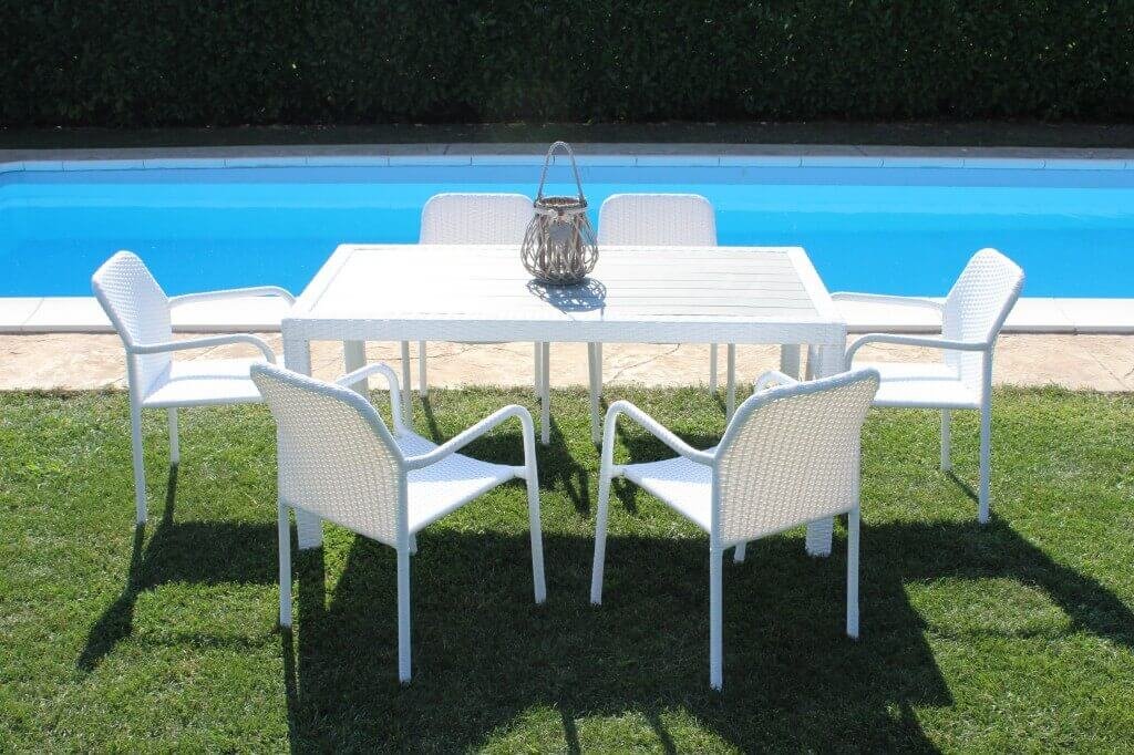 Il Tavolo da giardino 160×90 – ASTOR è la scelta perfetta per chi desidera arredare l’outdoor con stile e funzionalità. Caratterizzato da una struttura in resistente wicker bianco e un elegante piano grigio a doghe, questo tavolo da giardino coniuga raffinatezza e praticità in uno stile moderno e pulito. Il design semplice ma di effetto si adatta armoniosamente a spazi esterni come terrazze, verande, patii o giardini, offrendo una soluzione ideale per pranzi, cene e momenti conviviali all’aria aperta. La finitura intrecciata effetto rattan dona un tocco naturale e contemporaneo, mentre i materiali scelti garantiscono durata nel tempo e resistenza agli agenti atmosferici. Il tavolo ASTOR si distingue per la sua superficie ampia e comoda, capace di accogliere comodamente più commensali, diventando così il fulcro perfetto per giornate di relax o serate in compagnia. Pensato per chi ama vivere gli spazi esterni con eleganza e comfort, il Tavolo da giardino 160×90 ASTOR esprime tutto il suo valore in ambienti curati e luminosi, dove funzionalità e design si incontrano in perfetto equilibrio.