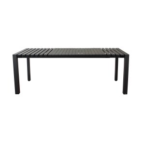 Elegante, funzionale e dall’estetica contemporanea, il tavolo da giardino allungabile in alluminio THALIA è la soluzione ideale per arredare con stile spazi outdoor come terrazze, verande o il dehor di un ristorante. La struttura robusta, interamente realizzata in alluminio verniciato color antracite, con finitura opaca, garantisce resistenza agli agenti atmosferici e leggerezza allo stesso tempo. Il design moderno, definito da linee essenziali e una superficie a doghe, esalta la sobrietà dei materiali e la pulizia formale, facendo del tavolo THALIA un complemento elegante e pratico. La funzionalità si unisce alla versatilità grazie al piano allungabile, che permette di passare con semplicità da 182 a 237 cm di lunghezza, offrendo comodamente spazio per ospitare fino a 10 persone. Perfetto per ambienti contract o per chi ama ricevere nel verde con raffinatezza, il tavolo da giardino THALIA trasmette una sensazione di ordine e contemporaneità, rendendo ogni occasione all’aperto un momento di accoglienza e stile.