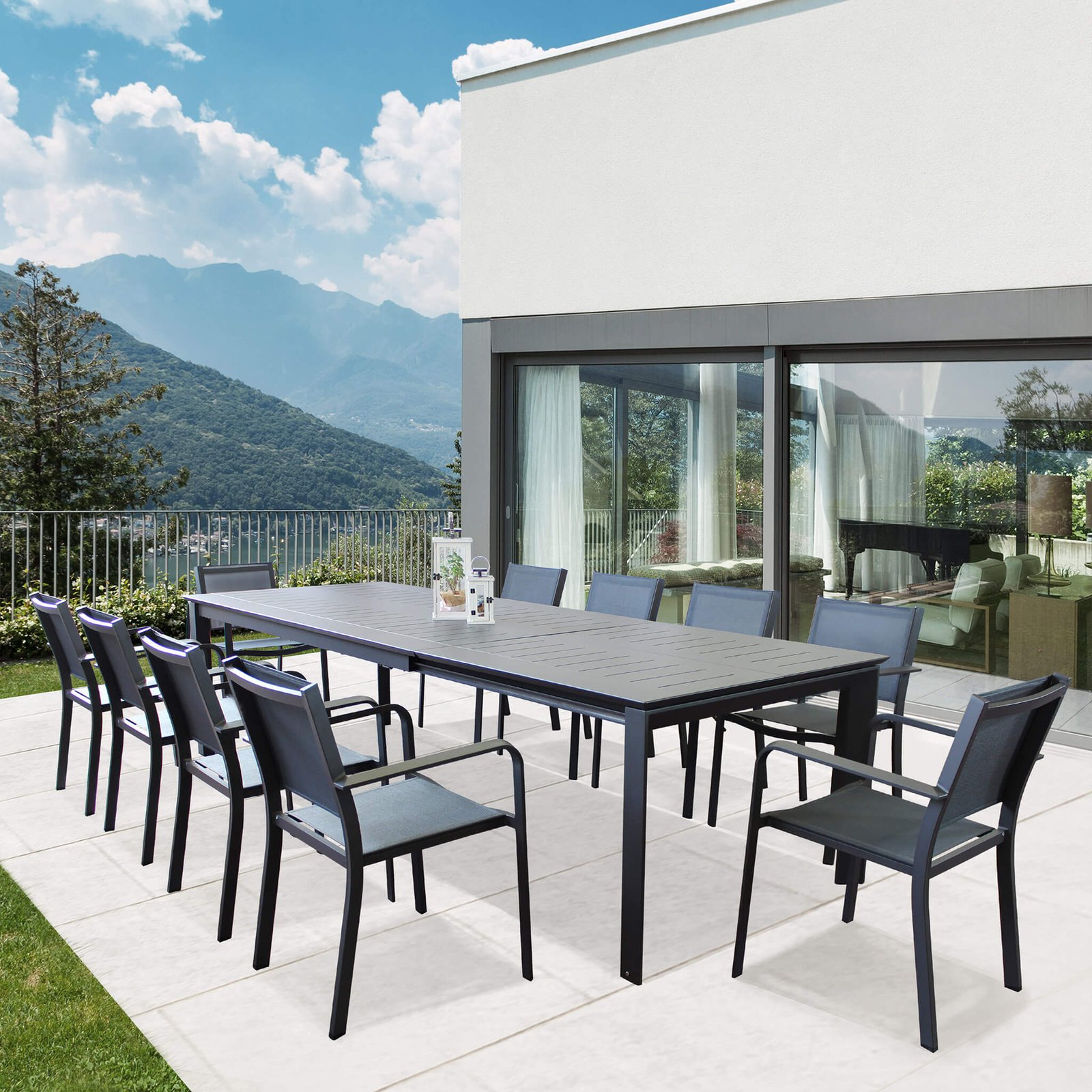 Il Tavolo da giardino allungabile in alluminio 200-300×110 cm – SOGRO è la scelta ideale per chi desidera arredare gli spazi esterni con eleganza, funzionalità e resistenza. Realizzato interamente in alluminio verniciato colore antracite, questo tavolo unisce linee pulite e contemporanee a una struttura solida e durevole, pensata per affrontare al meglio le intemperie e l’uso quotidiano in giardino, terrazza o veranda. Il piano, caratterizzato da una raffinata lavorazione a doghe, si estende facilmente da 200 a 300 cm, garantendo fino a 12 posti a sedere, perfetti per accogliere amici e familiari durante cene all’aperto e momenti conviviali. Il design minimalista e il colore neutro permettono al tavolo SOGRO di armonizzarsi con qualsiasi stile di arredo outdoor, dal moderno all’industriale. Pratico e versatile, questo tavolo da giardino allungabile rappresenta una soluzione intelligente per vivere l’outdoor con libertà e gusto, offrendo tutto lo spazio necessario quando serve, senza rinunciare all’eleganza. Un complemento d’arredo pensato per trasformare ogni occasione all’aperto in un’esperienza di condivisione autentica e confortevole.