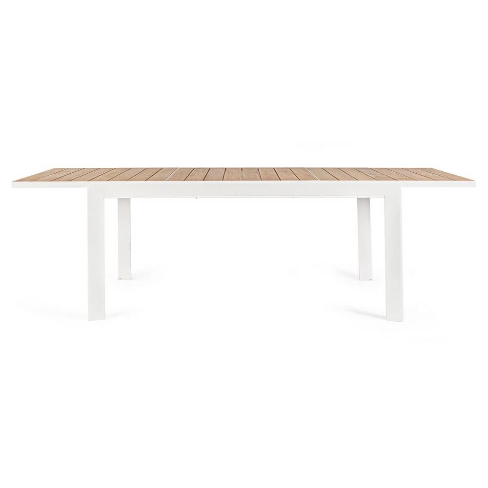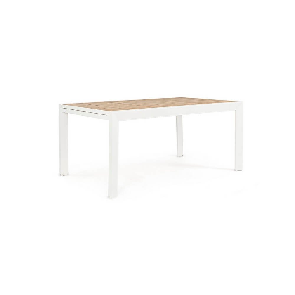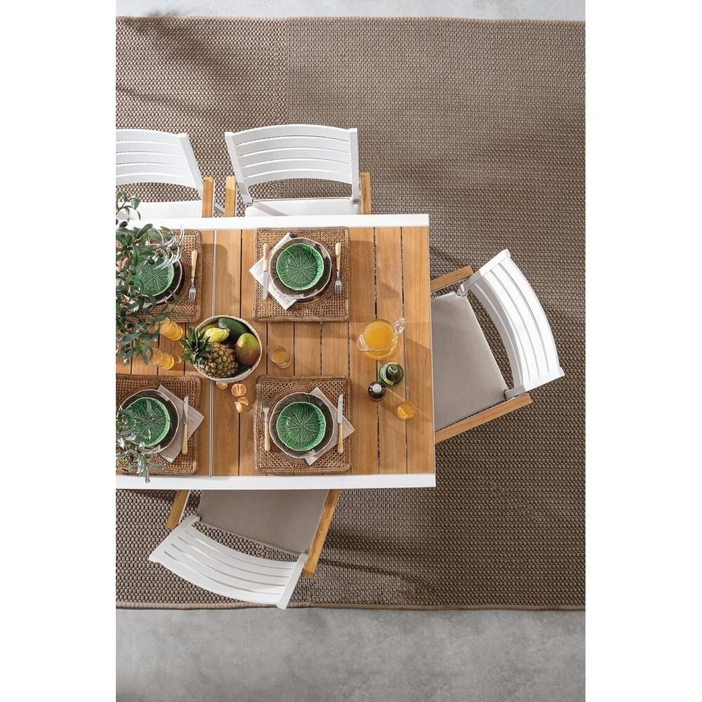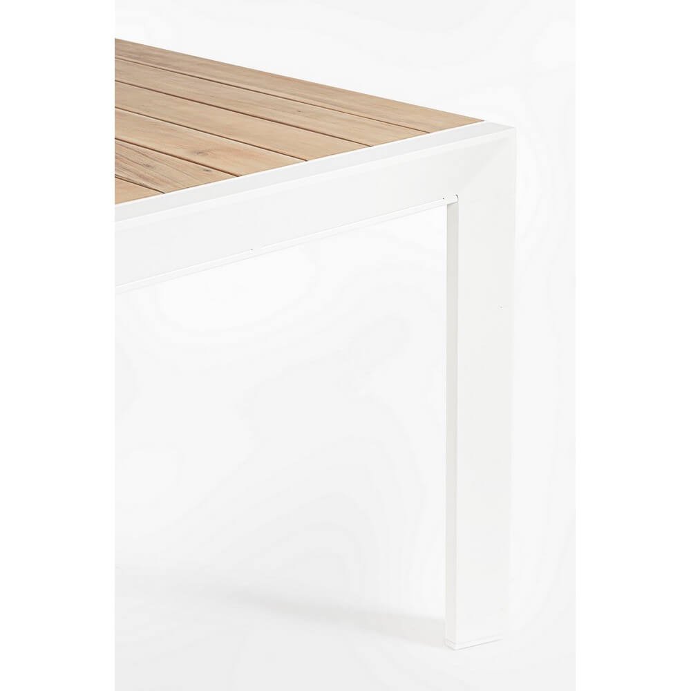 struttura in alluminio verniciato a polvere (poliestere). piano con doghe in alluminio con verniciatura effetto legno. piedini regolabili. viteria in acciaio inossidabile. gambe da assemblare.