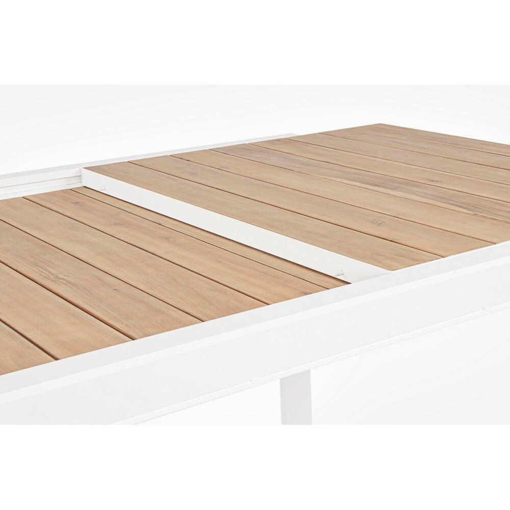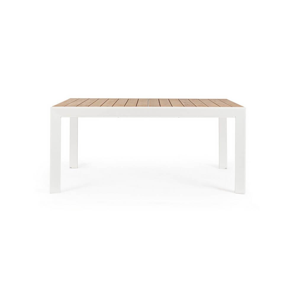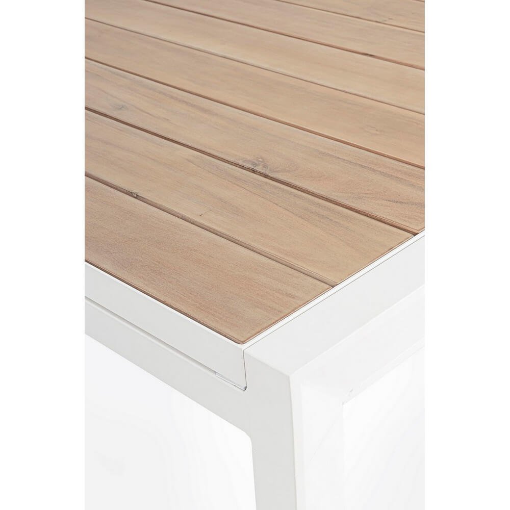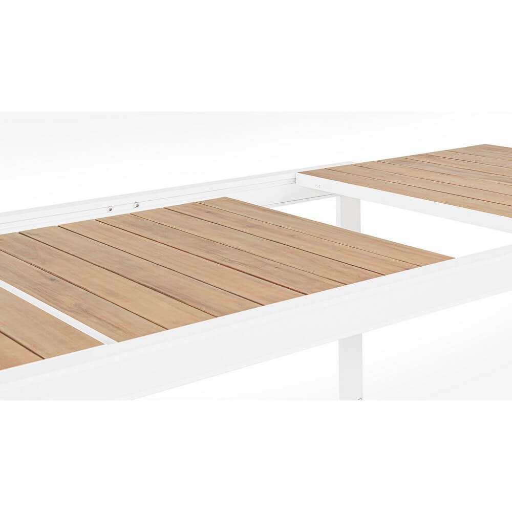 struttura in alluminio verniciato a polvere (poliestere). piano con doghe in alluminio con verniciatura effetto legno. piedini regolabili. viteria in acciaio inossidabile. gambe da assemblare.
