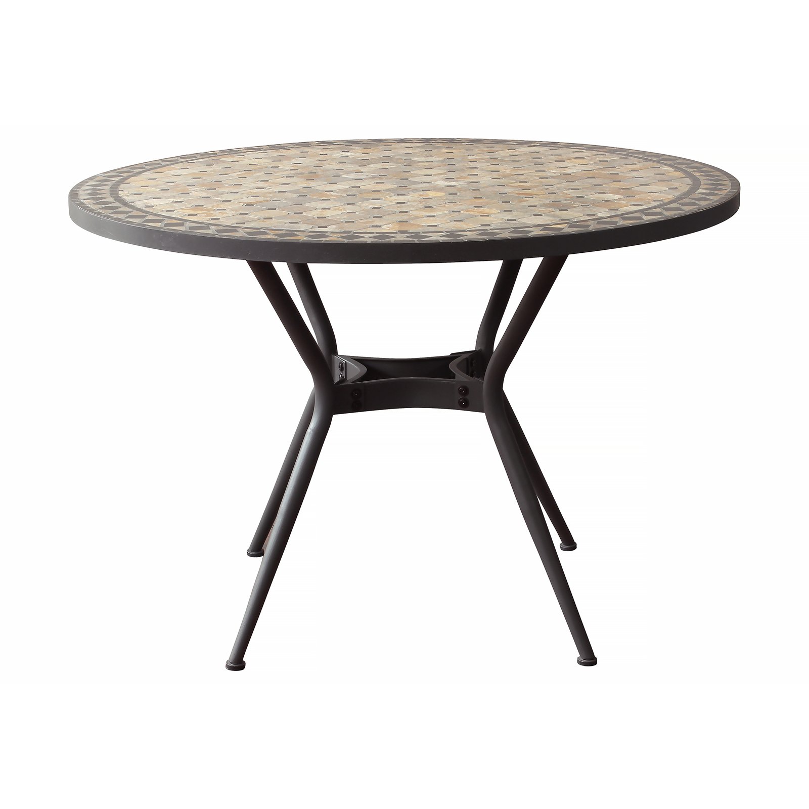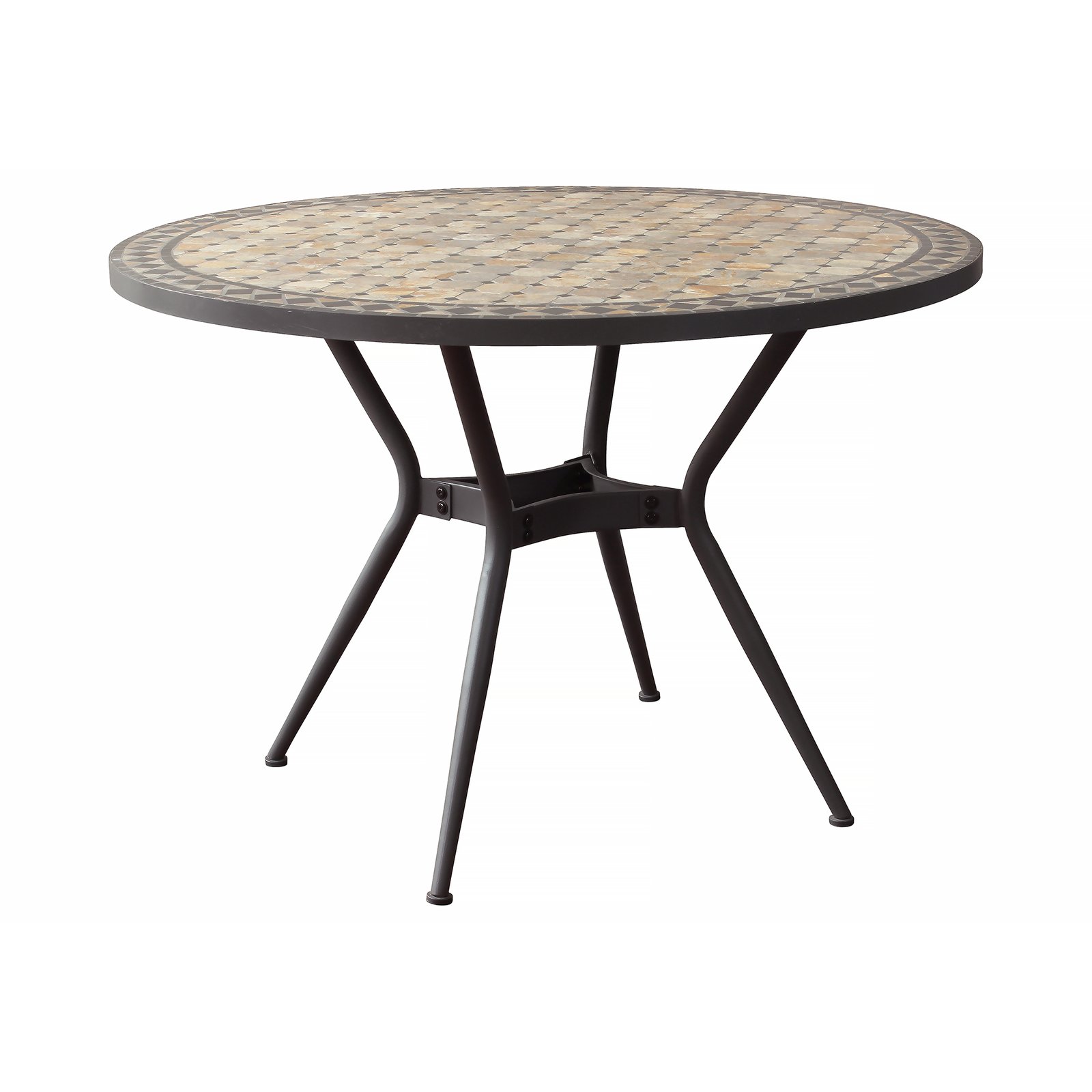 Raffinato e intramontabile, il Tavolo da giardino in acciaio e mosaico – NOEMI è la scelta perfetta per chi desidera arredare con personalità spazi outdoor come giardini, terrazze o caffetterie all’aperto. Il suo elegante piano ovale dal diametro di 110 cm richiama lo stile vintage grazie all’affascinante superficie in mosaico multicolor nei toni caldi del beige e dell’antracite, che dona un tocco artistico e ricercato all’ambiente. La solida struttura in acciaio verniciato a polvere color antracite conferisce al tavolo un’eccellente resistenza agli agenti atmosferici e ne garantisce la durata nel tempo, unita alla stabilità della base fissa a quattro gambe sottili e leggermente curve, che lo rendono piacevolmente slanciato ed equilibrato dal punto di vista visivo. Pensato per accogliere comodamente fino a 4 persone, il modello NOEMI unisce funzionalità e stile, offrendo una soluzione d’arredo versatile per ambienti esterni dal gusto raffinato. Perfetto per sorseggiare un caffè in compagnia o per pranzi all’aperto immersi nel relax, questo tavolo da giardino in mosaico è l’essenza dell’eleganza senza tempo.