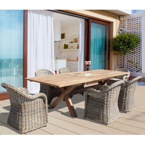 Il Tavolo da Giardino Rettangolare Allungabile in Teak 220/300×100 – KORONIS rappresenta una scelta raffinata e funzionale per arredare con eleganza gli spazi esterni. Realizzato interamente in teak, uno dei materiali più pregiati e resistenti per l’arredo outdoor, questo tavolo da giardino unisce robustezza naturale e un’estetica calda e accogliente. Il colore marrone del legno, con le sue sfumature autentiche, valorizza ulteriormente il design lineare e contemporaneo, enfatizzato dalla struttura a gambe incrociate che dona personalità e stabilità. Il sistema di allungamento centrale a libro permette di passare agilmente da 220 a 300 cm di lunghezza, garantendo grande versatilità e ospitalità per pranzi e cene all’aperto con numerosi invitati. Il Tavolo da Giardino Rettangolare Allungabile in Teak KORONIS esprime al meglio il suo valore in ambienti esterni come terrazze, verande o giardini, regalando un’atmosfera conviviale, naturale ed elegante in ogni occasione.