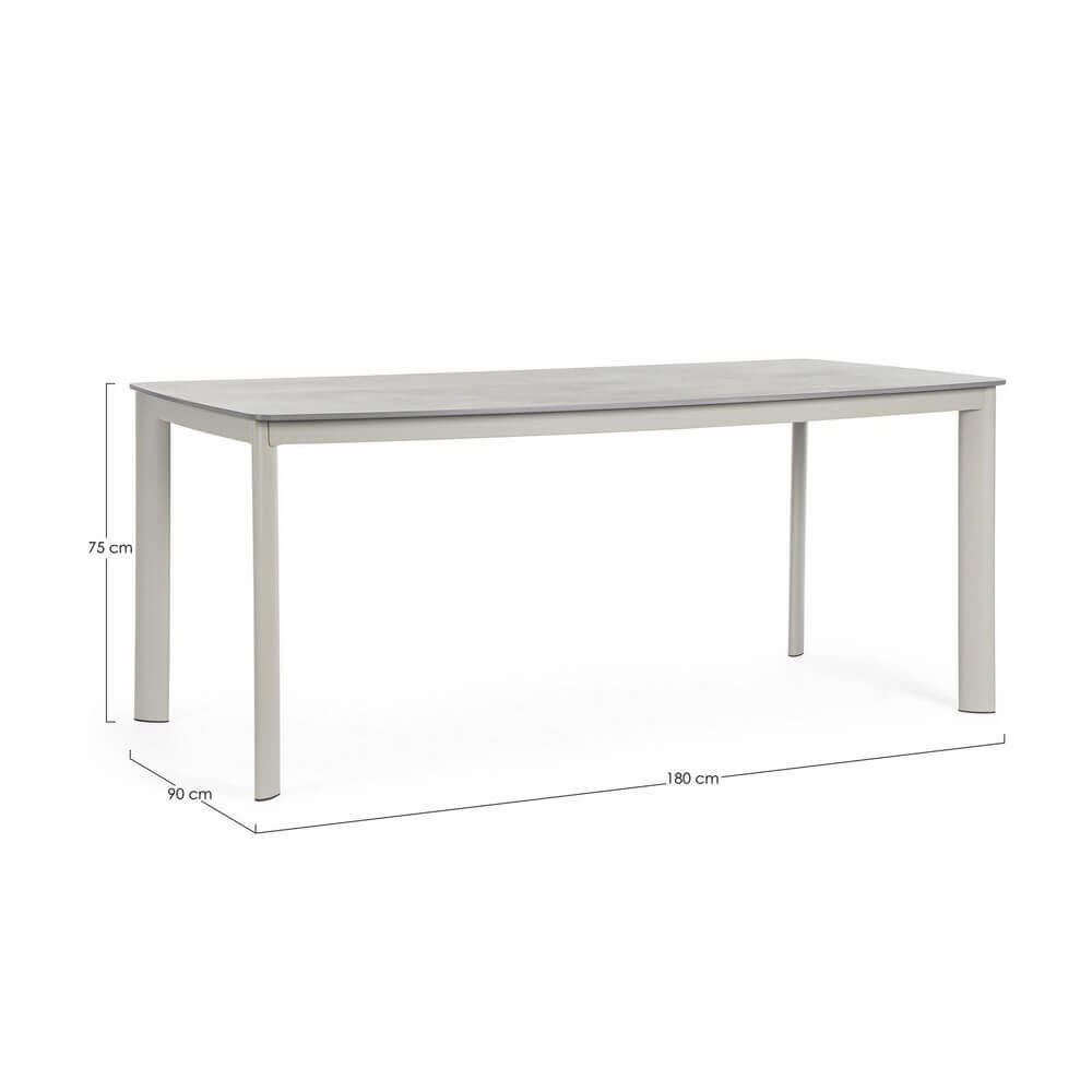 Il Tavolo da Pranzo Alluminio Tortora Moderno da Esterno 180×90 – ALCORA è la scelta perfetta per chi desidera arredare i propri spazi outdoor con eleganza contemporanea e materiali di alta qualità. Caratterizzato da una struttura in alluminio verniciato a polvere color tortora, si distingue per la sua leggerezza, resistenza alla corrosione e durabilità, ideali per affrontare qualsiasi condizione atmosferica su terrazze, giardini o bordi piscina. Il piano in pietra sinterizzata effetto marmo da 11 mm dona un’impressione visiva sofisticata e raffinata, senza rinunciare alla praticità: è robusto, antigraffio e facile da mantenere pulito. Le linee essenziali e moderne del design si integrano armoniosamente in qualsiasi contesto outdoor, regalando un tocco di sobria raffinatezza. Le gambe da assemblare facilitano il trasporto e l’installazione, mentre la ferramenta in acciaio inox assicura un’eccezionale solidità strutturale. Ideale per cene all’aperto, momenti conviviali o rilassanti pranzi in giardino, il tavolo ALCORA offre una combinazione impeccabile tra estetica moderna e funzionalità, trasformando lo spazio esterno in un ambiente accogliente e stiloso.