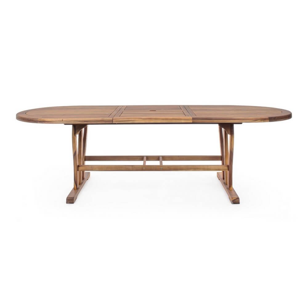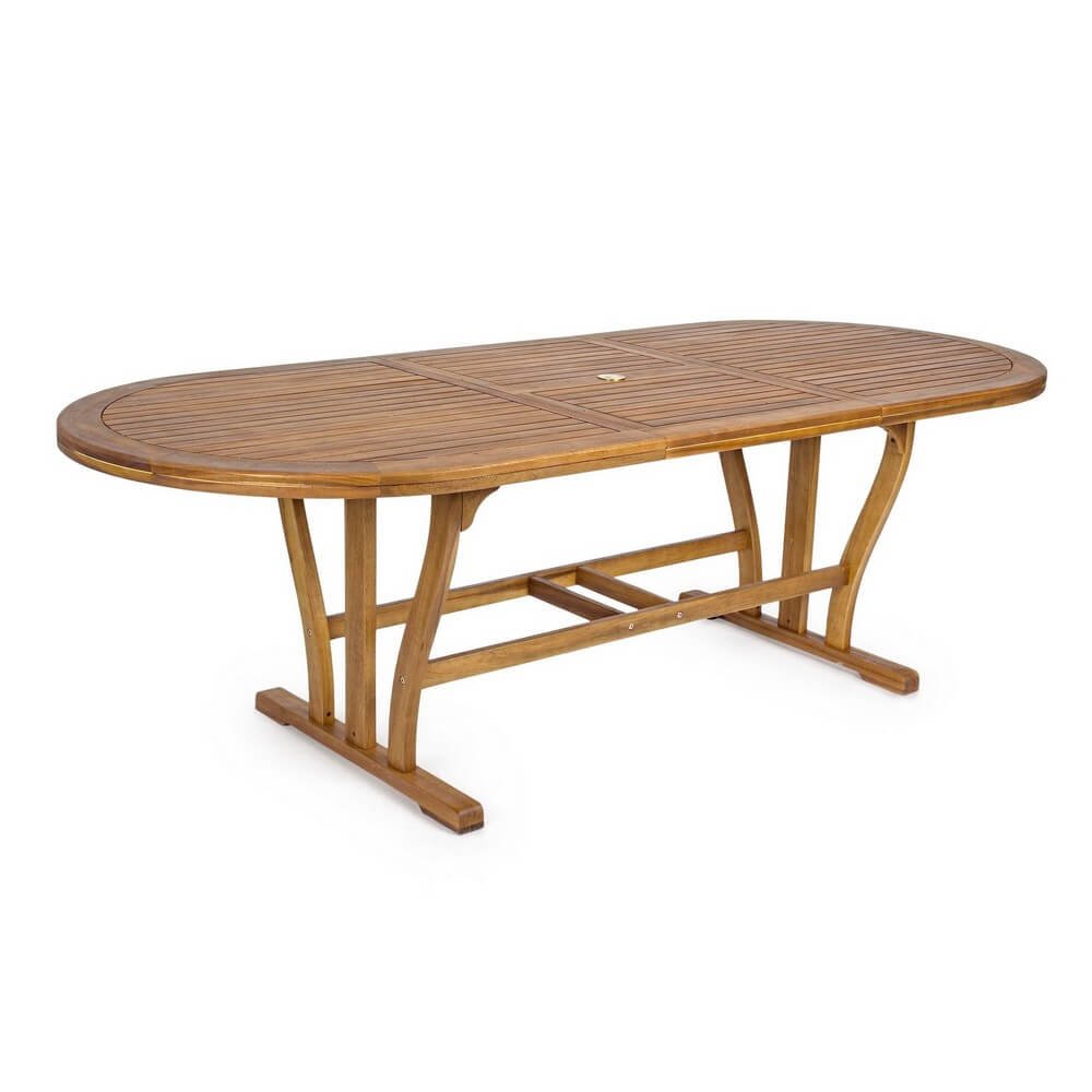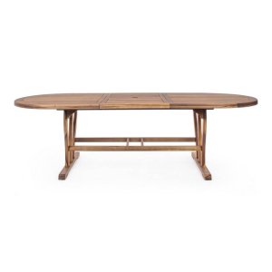 Elegante, pratico e pensato per vivere al meglio gli spazi esterni, il Tavolo Ovale Legno Marrone da Esterno 180-240 cm – SERENITY è la scelta ideale per arredare il giardino o la terrazza con stile e funzionalità. Realizzato in legno di acacia con finitura ad olio, questo tavolo da giardino unisce resistenza agli agenti atmosferici e calore naturale del materiale, esaltato da un raffinato colore marrone che si integra armoniosamente con l’ambiente outdoor. Il design ovale con doppio bordo e struttura solida dona un tocco sofisticato, mentre la possibilità di estensione da 180 a 240 cm, grazie alla pratica barra di scorrimento in plastica e viteria in acciaio galvanizzato, lo rende perfetto per ospitare comodamente più persone. Facile da assemblare, robusto e versatile, il tavolo allungabile SERENITY trasforma ogni incontro all’aperto in un momento di convivialità, offrendo una superficie ampia e accogliente per pranzi in famiglia, cene tra amici o pause rilassanti al sole.