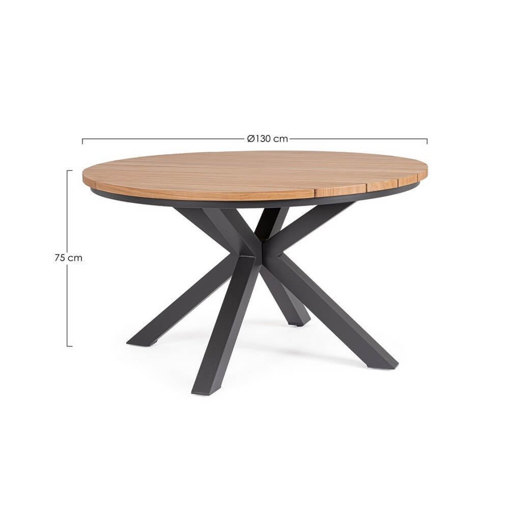 Elegante e funzionale, il Tavolo Rotondo Alluminio Antracite Moderno Ø130 cm – ORYLIA è la scelta perfetta per valorizzare gli spazi esterni con un tocco di design contemporaneo. Realizzato con una robusta struttura in alluminio verniciato a polvere color antracite, abbina leggerezza e resistenza alla corrosione, ideale per l’arredo giardino moderno. Il piano a doghe in alluminio con raffinata verniciatura effetto legno dona calore visivo senza rinunciare alla praticità di manutenzione, mentre le gambe incrociate, da assemblare, offrono solidità e un appeal architettonico distintivo. La presenza di viteria in acciaio inossidabile e piedini regolabili assicura stabilità anche su superfici irregolari. Grazie al suo diametro di 130 cm, questo tavolo da giardino è perfetto per accogliere fino a sei persone in un’atmosfera conviviale e rilassata. Il Tavolo rotondo ORYLIA esprime al meglio il suo valore in terrazze, verande o giardini curati, dove il design incontra la funzionalità per momenti all’aperto all’insegna dell’eleganza e del comfort.