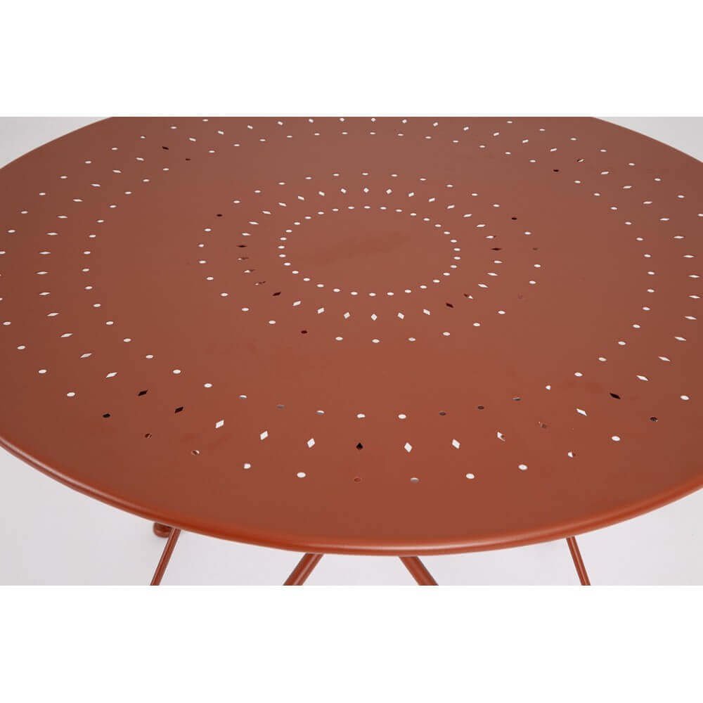 Il Tavolo Rotondo Acciaio Rosso Rustico da Esterno Ø90 cm – JENARIS è una raffinata soluzione d’arredo da giardino che combina solidità strutturale e un’eleganza dal gusto vintage. Realizzato interamente in acciaio trattato con e-coating per resistere agli agenti atmosferici e rifinito con una verniciatura a polvere poliestere opaca, si distingue per la sua estetica rustica e sofisticata, esaltata da un’intensa tonalità di rosso che dona calore e personalità agli spazi outdoor. Il piano rotondo, traforato con disegni geometrici sottili, aggiunge leggerezza visiva, mentre la base con gambe sinuose e riccioli ornamentali richiama lo stile romantico dell’arredo da giardino classico. Perfetto per valorizzare terrazze, cortili, verande o angoli verdi, questo tavolo da esterno JENARIS unisce funzionalità e bellezza, diventando il fulcro ideale per pranzi all’aria aperta o momenti di convivialità. Da assemblare con semplicità, offre qualità costruttiva e uno stile senza tempo, capace di trasformare ogni ambiente esterno in un’oasi di charme e relax.