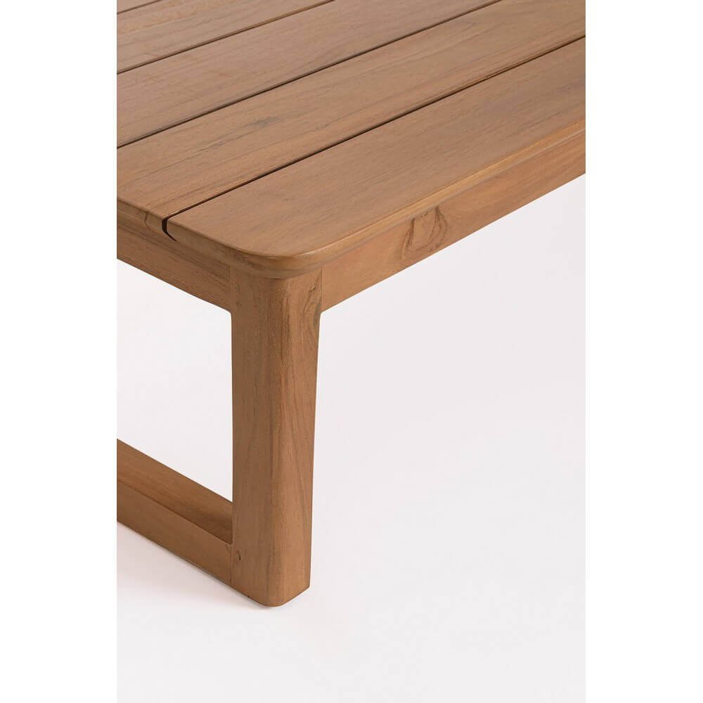 Il Tavolino Rettangolare in Teak Moderno da Esterno 122×60 โ ZAFIRA รจ un elemento dโarredo da giardino che unisce stile contemporaneo, resistenza e sostenibilitร . Realizzato interamente in teak certificato SVLK, proveniente da foreste gestite responsabilmente, si distingue per la qualitร del legno e la raffinata finitura a base dโacqua che ne esalta le venature naturali. Il design moderno a linee essenziali รจ valorizzato dalla struttura geometrica delle gambe a slitta, che conferisce una sensazione di stabilitร e leggerezza allo stesso tempo. Il colore caldo del teak si integra armoniosamente in ogni contesto outdoor, aggiungendo un tocco di eleganza senza tempo a terrazze, giardini o verande. Con la sua superficie spaziosa e proporzioni ben bilanciate, il tavolino ZAFIRA รจ perfetto per accompagnare momenti di convivialitร allโaria aperta, offrendo una base funzionale per bevande, libri o accessori decorativi. Il suo stile pulito lo rende versatile e abbinabile sia ad arredi minimalisti che a soluzioni piรน tradizionali, esprimendo al meglio il suo valore in ambienti outdoor curati e accoglienti.
