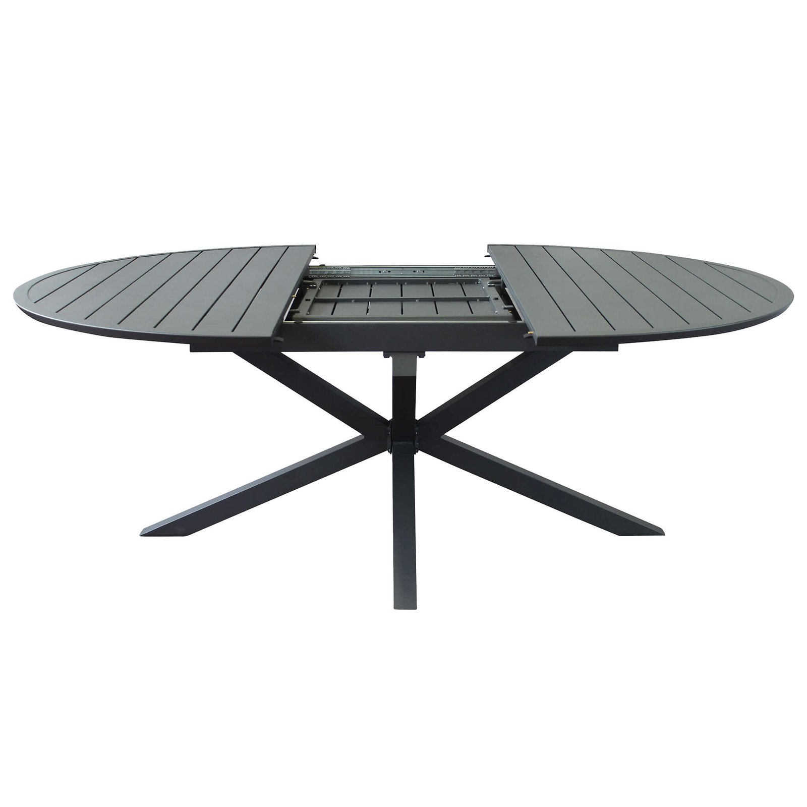 Il Tavolo rotondo da giardino in alluminio allungabile ARTU è la perfetta sintesi tra design moderno, funzionalità e resistenza, pensato per elevare con eleganza lo stile dei tuoi spazi esterni. Realizzato interamente in alluminio verniciato nel raffinato colore antracite, si distingue per la sua struttura robusta e leggera al tempo stesso, ideale per affrontare senza problemi gli agenti atmosferici. La base a gambe incrociate dona un tocco scultoreo e contemporaneo, mentre il pratico sistema di allunga centrale consente di passare facilmente da un diametro di 150 cm a una superficie estesa di 204 cm, offrendo così versatilità e maggiore capienza per ospitare momenti conviviali all’aperto. Il piano a doghe orizzontali, perfettamente integrato esteticamente con le linee pulite del design, contribuisce a creare un effetto visivo sobrio e armonioso, perfetto per ambienti d’arredo giardino moderni o minimalisti. Il tavolo ARTU esprime il meglio di sé in terrazze, verande o spazi outdoor raffinati, trasformando ogni occasione in un’esperienza di comfort e stile senza tempo.