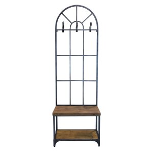 L’Appendiabiti con panca in Acciaio Legno cm 63,5x41x191 – ERLE è un complemento d’arredo dal forte impatto estetico, perfetto per valorizzare ingressi, corridoi o ambienti dallo stile industrial e contemporaneo. La solida struttura in acciaio nero, abbinata al calore materico del legno marrone, crea un contrasto armonico e raffinato che fonde robustezza e accoglienza in un unico elemento funzionale. Il design a griglia verticale con arco superiore dona leggerezza visiva, richiamando l’eleganza delle finestre in stile loft, mentre i quattro ganci appendiabiti offrono praticità quotidiana senza rinunciare allo stile. La panca integrata unisce comfort e utilità, ideale per sedersi durante il cambio scarpe, e il ripiano inferiore consente di organizzare con ordine borse o calzature. Grazie alle sue dimensioni compatte, l’appendiabiti ERLE si adatta facilmente anche ad ambienti ridotti, diventando un punto focale decorativo oltre che funzionale. Un perfetto equilibrio tra estetica industriale, materiali di qualità e praticità d’uso, pensato per chi desidera un ingresso ordinato e di carattere.