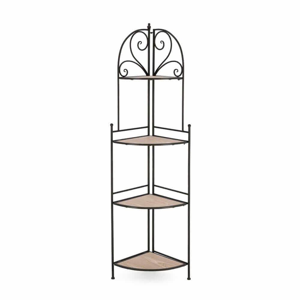 Elegante e funzionale, l’Angoliera 4 Piani Acciaio Nero da Interno – GISELLE rappresenta una raffinata soluzione d’arredo per ottimizzare gli spazi con stile. Pensata per inserirsi armoniosamente in soggiorni, corridoi o ingressi, questa angoliera unisce l’eleganza decorativa del ferro battuto all’affidabilità della struttura in acciaio verniciato a polvere epossidica, garantendo resistenza e durata nel tempo. I ripiani angolari in MDF effetto legno chiaro offrono un piacevole contrasto cromatico con la struttura nera opaca, aggiungendo un tocco naturale e delicato all’insieme. Le linee sinuose e il motivo decorativo superiore donano leggerezza visiva, richiamando uno stile romantico, ideale per ambienti classici, shabby chic o rustici contemporanei. Perfetta come scaffale per piante, cornici, libri o piccoli oggetti decorativi, l’angoliera GISELLE valorizza anche gli spazi più difficili da arredare, trasformandoli in angoli accoglienti e curati. L’esperienza d’uso è quella di un complemento d’arredo che unisce estetica e funzionalità, rendendo ogni angolo della casa un punto di bellezza e ordine.
