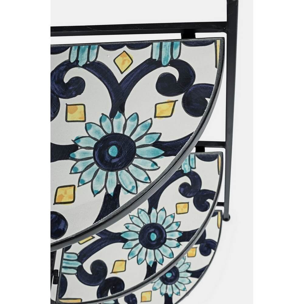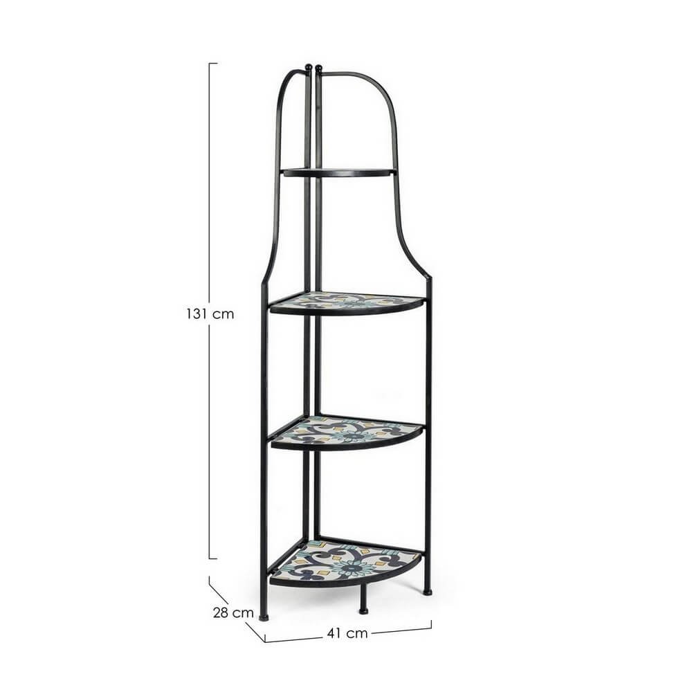 L’Angoliera 4 Piani Acciaio Nero da Interno Stile Moderno – AMALFI è un raffinato complemento d’arredo pensato per arricchire con stile e funzionalità ogni ambiente della casa, dalla cucina al soggiorno, fino al bagno o al terrazzo coperto. La sua struttura in acciaio verniciato nero, trattato con e-coating e polvere epossidica, garantisce solidità e resistenza anche in ambienti umidi o esposti a sbalzi termici, mentre i ripiani in ceramica decorata donano un tocco artistico e ricercato che richiama l’eleganza italiana. Lo stile moderno si fonde armoniosamente con un richiamo mediterraneo, grazie alle fantasie vivaci ma equilibrate dei piani, rendendo l’angoliera AMALFI non solo un elemento pratico per l’organizzazione, ma anche un punto focale decorativo. La struttura pieghevole la rende estremamente versatile e facile da riporre quando non in uso. Con le sue dimensioni compatte (41 ax28 bx131 h cm), si adatta perfettamente agli spazi ridotti, valorizzando persino gli angoli più trascurati della casa con grande gusto. Ideale per chi desidera un mobile angolare in ferro dallo stile unico, l’angoliera AMALFI trasforma ogni angolo in un’opportunità espressiva di design e funzionalità.