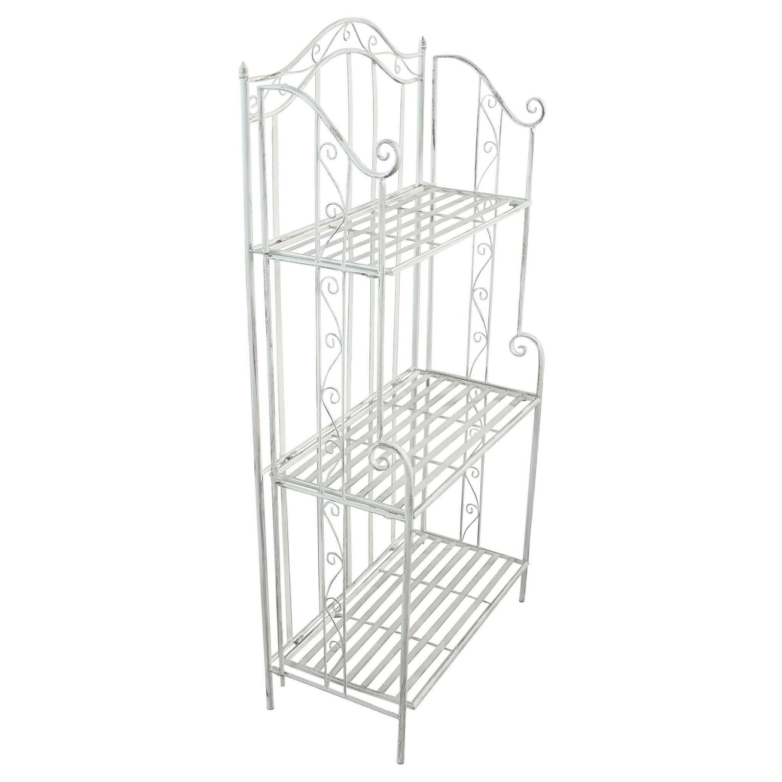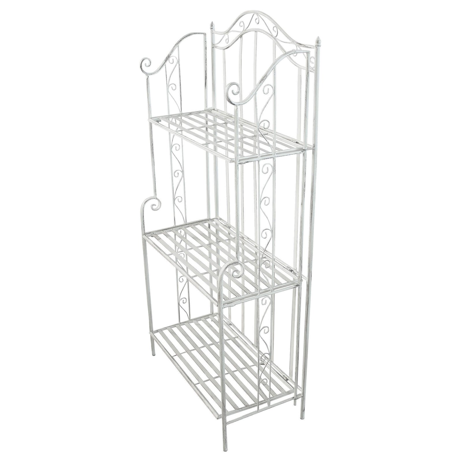 Lo scaffale 3 piani stile provenzale verniciato in acciaio cm 60x32x128 – REGGIE è la scelta perfetta per chi ama un arredamento romantico, elegante e delicatamente rétro. Realizzato in resistente acciaio con verniciatura a polvere bianca e trattamento a elettroforesi, questo complemento d’arredo unisce la solidità dei materiali alla leggerezza visiva del design. Le linee sinuose, gli eleganti riccioli in stile ferro battuto e la struttura slanciata evocano immediatamente l’atmosfera calda e raffinata delle case di campagna della Provenza. Grazie ai suoi tre ripiani aperti e alla struttura ariosa, lo scaffale REGGIE è ideale per arricchire ambienti come il soggiorno, l’ingresso, il bagno o la veranda, offrendo una soluzione pratica per esporre piante, oggettistica o tessili. Le dimensioni compatte (60x32x128 cm) lo rendono perfetto anche per spazi ridotti, senza rinunciare allo stile. Questo scaffale si distingue per la sua versatilità e per il fascino senza tempo, diventando un vero e proprio elemento decorativo oltre che funzionale. Si inserisce con naturale eleganza in interni shabby, classici o country chic, portando un tocco di charme francese nella quotidianità.