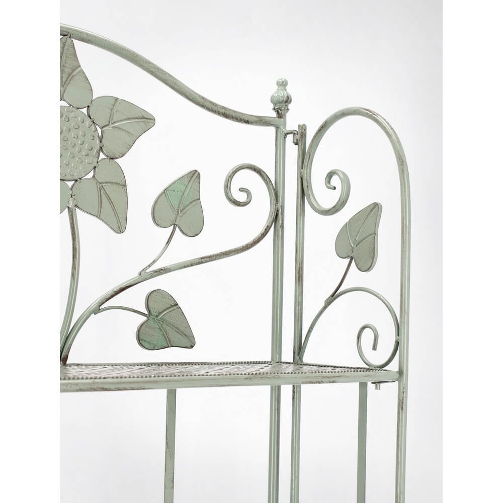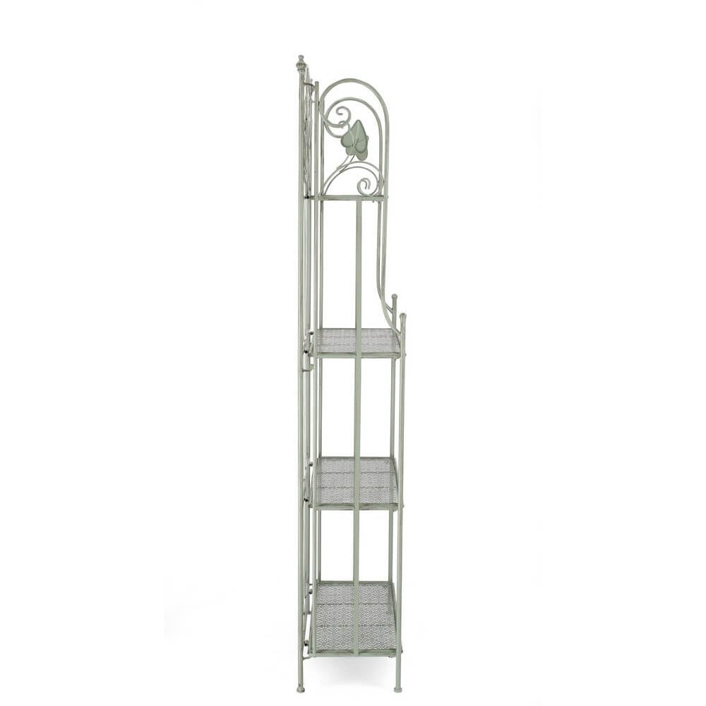Lo scaffale 4 Piani Acciaio Verde Rustico da Interno – GIANNA è un raffinato complemento d’arredo pensato per arricchire gli ambienti interni con un tocco di eleganza vintage e funzionalità. Realizzato in resistente acciaio verniciato a polvere epossidica, garantisce solidità e durabilità nel tempo, mentre la finitura verde tenue, leggermente anticata, esalta lo stile rustico con un’eleganza sobria e romantica. I quattro ripiani traforati, uniti alle linee sottili e slanciate della struttura, offrono una base leggera ma stabile per esporre libri, piante, candele o oggetti decorativi con charme. Il dettaglio decorativo floreale inciso sulla parte superiore conferisce unicità al design, rendendo questo scaffale ideale per ambienti in stile shabby chic, provenzale o country. Il modello GIANNA è inoltre pieghevole, una caratteristica pratica che consente di riporlo facilmente o spostarlo secondo le esigenze. Perfetto per valorizzare un soggiorno, un corridoio, una veranda o una cucina con gusto e delicatezza, questo complemento in ferro dona carattere agli spazi mantenendo una presenza visiva leggera e raffinata.