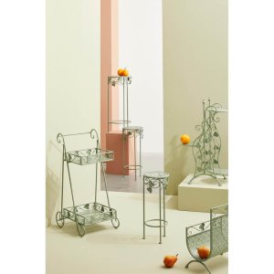 Il Set 4 Porta Fiori Metallo Verde Salvia da Interno – GIANNA è un raffinato complemento d’arredo pensato per impreziosire ambienti interni con eleganza e stile. Realizzato in resistente acciaio verniciato a polvere epossidica, questo supporto si distingue per la sua struttura leggera ma solida, con un design armonioso in stile shabby chic che richiama le atmosfere retro con un tocco romantico. La finitura in delicato verde salvia dona una sensazione di freschezza naturale, perfettamente in linea con tendenze d’arredo contemporanee che valorizzano materiali durevoli e colori soft. I dettagli decorativi in ferro, come le foglioline in rilievo e le ricercate volute laterali, rendono ogni elemento del set visivamente accattivante, ideale per valorizzare piante e fiori d’interno con un gusto ricercato. Il Set GIANNA si inserisce perfettamente in spazi come soggiorni, verande o ingressi, aggiungendo un tocco botanico chic e creando un piccolo angolo verde pieno di charme. Un accessorio funzionale e decorativo che trasforma con semplicità ogni ambiente, esprimendo al meglio la sua bellezza in contesti accoglienti e curati nei dettagli.