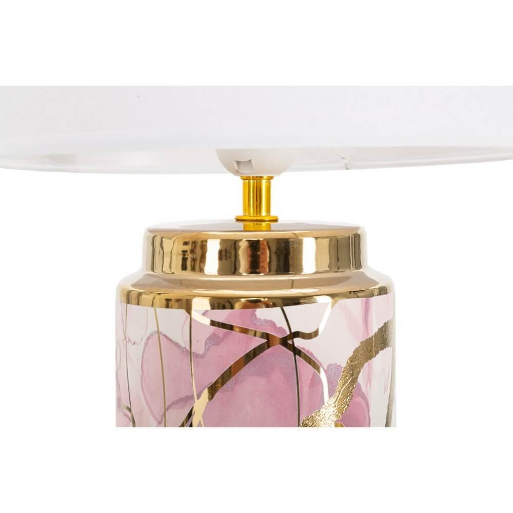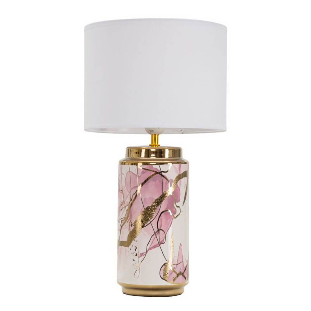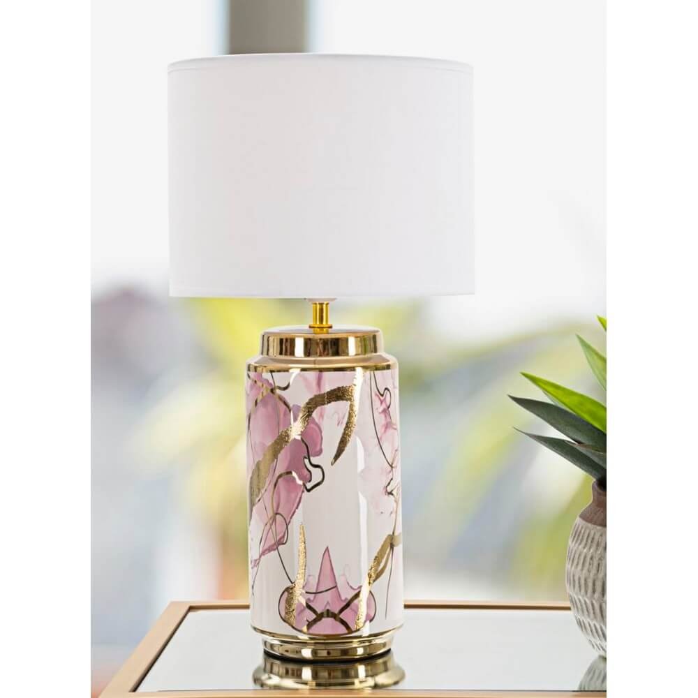 Lampada da tavolo in ceramica con paralume in tessuto bianco. La particolare decorazione floreale della base la rende perfetta per ogni ambiente.