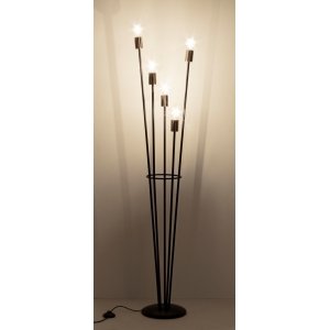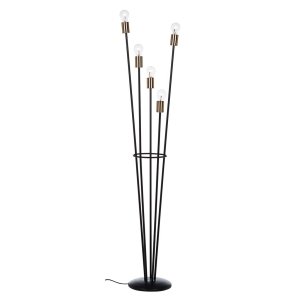 La Lampada da Terra Metallo Nero Moderna da Interno H155 – NABIL è una piantana dal design ricercato che coniuga estetica contemporanea e funzionalità. Realizzata in acciaio verniciato a polvere epossidica, presenta una struttura slanciata ed elegante composta da cinque aste sottili che si diramano verso l’alto, ciascuna culminante con un portalampada dorato in stile industrial-chic. L’effetto visivo è scenografico ma allo stesso tempo lineare, perfetto per ambienti moderni, loft urbani o salotti dal gusto minimal. Il colore nero opaco del metallo, combinato ai dettagli in finitura ottone, conferisce al prodotto un carattere sofisticato e di tendenza. Il cavo lungo 1,75 metri e l’interruttore posizionato a 75 cm dalla lampada assicurano praticità e libertà di collocazione. Questa lampada può ospitare fino a cinque lampadine E27 (non incluse), offrendo così un’illuminazione d’ambiente diffusa e personalizzabile. Ideale come punto luce d’arredo, la NABIL valorizza gli interni aggiungendo una nota di dinamismo e personalità, ed è perfetta per creare atmosfere calde e suggestive in soggiorni, studi o ingressi dal gusto contemporaneo.