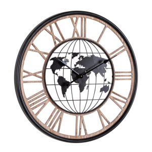 L’Orologio da Parete Legno Nero Industriale Ø70 cm – REGALITÀ è un complemento d’arredo dallo stile deciso e contemporaneo, perfetto per valorizzare ambienti moderni, industriali o dal gusto urban-chic. Realizzato in MDF e acciaio, unisce la calda eleganza del legno alla solidità del metallo, creando un contrasto armonioso che cattura lo sguardo. Il design è impreziosito da una suggestiva mappa del mondo centrale e da numeri romani intagliati, che donano profondità e carattere. La tonalità nera dominante, combinata alle sfumature naturali del legno, conferisce all’orologio un’estetica sofisticata e versatile, ideale per salotti, studi o open space dall’anima cosmopolita. Grazie alla sua imponente dimensione di 70 cm di diametro, l’Orologio da Parete Legno Nero Industriale Ø70 cm – REGALITÀ diventa un vero punto focale dell’ambiente, unendo funzionalità e stile in un unico oggetto decorativo. Alimentato da una batteria AA da 1.5V, offre una lettura chiara e puntuale del tempo, mentre dona alla parete un tocco di eleganza internazionale e senza tempo.