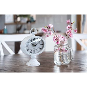 L’orologio da appoggio in Acciaio Vetro cm 16,5×8,5×22,5 – FABIAN è un raffinato complemento d’arredo che unisce funzionalità e fascino retrò, perfetto per valorizzare ambienti in stile vintage o shabby chic. Realizzato in robusto acciaio con finitura bianca leggermente decapata, questo orologio da appoggio si distingue per la sua silhouette compatta ed elegante, impreziosita da una cornice decorativa con rilievi e da una base solida e armoniosa. Il quadrante, protetto da una superficie in vetro, presenta numeri romani dal carattere deciso e lancette ornate in stile antico, restituendo il fascino senza tempo degli oggetti d’epoca. Le dimensioni contenute lo rendono ideale da posizionare su mensole, consolle o comodini, aggiungendo un tocco di classe e calore a salotti, ingressi o camere da letto. Il modello FABIAN incarna l’essenza dell’arredo vintage, offrendo un accento raffinato che cattura lo sguardo con discrezione ed eleganza. Perfetto per chi desidera un oggetto decorativo dal carattere nostalgico, l’orologio FABIAN crea un’atmosfera accogliente e suggestiva in qualunque spazio venga collocato.
