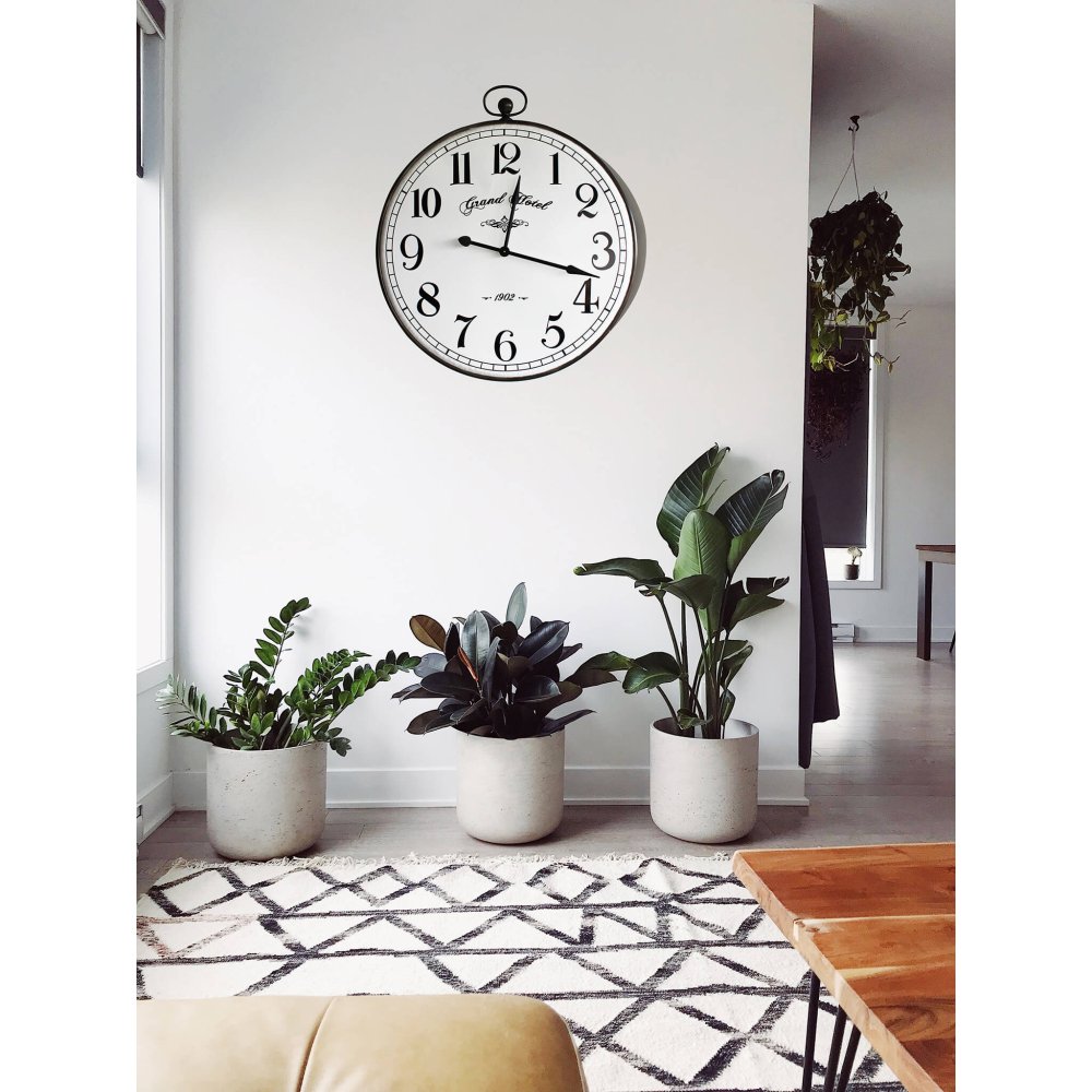 Il modello Orologio da parete XL in Acciaio Vetro cm 92×8,7×105,5 – CARL è un complemento d’arredo dal forte impatto visivo, perfetto per valorizzare ambienti in stile vintage con un tocco industriale ed elegante. Realizzato in acciaio, questo orologio dall’ampio diametro si distingue per la sua struttura solida e il raffinato quadrante in vetro bianco, arricchito da numeri neri ben visibili e lancette sottili dal design retrò. La cornice in ferro dalla finitura brunita e l’attenzione ai dettagli grafici, come la tipografia d’epoca e la scritta “1902”, donano al prodotto un fascino senza tempo. Pensato per essere appeso, l’orologio CARL si presta magnificamente a spazi ampi come soggiorni, ingressi o ambienti commerciali, dove può diventare un vero e proprio punto focale dell’arredamento. Grazie alla sua estetica equilibrata e alla combinazione di materiali resistenti e pregiati, questo orologio da parete unisce funzionalità e stile, offrendo un’esperienza visiva ricca di carattere e personalità.