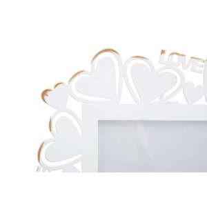 Elegante cornice portafoto in metallo bianco con intarsi a forma di cuore che donano un tocco di leggerezza e amore ad ogni ambiente.