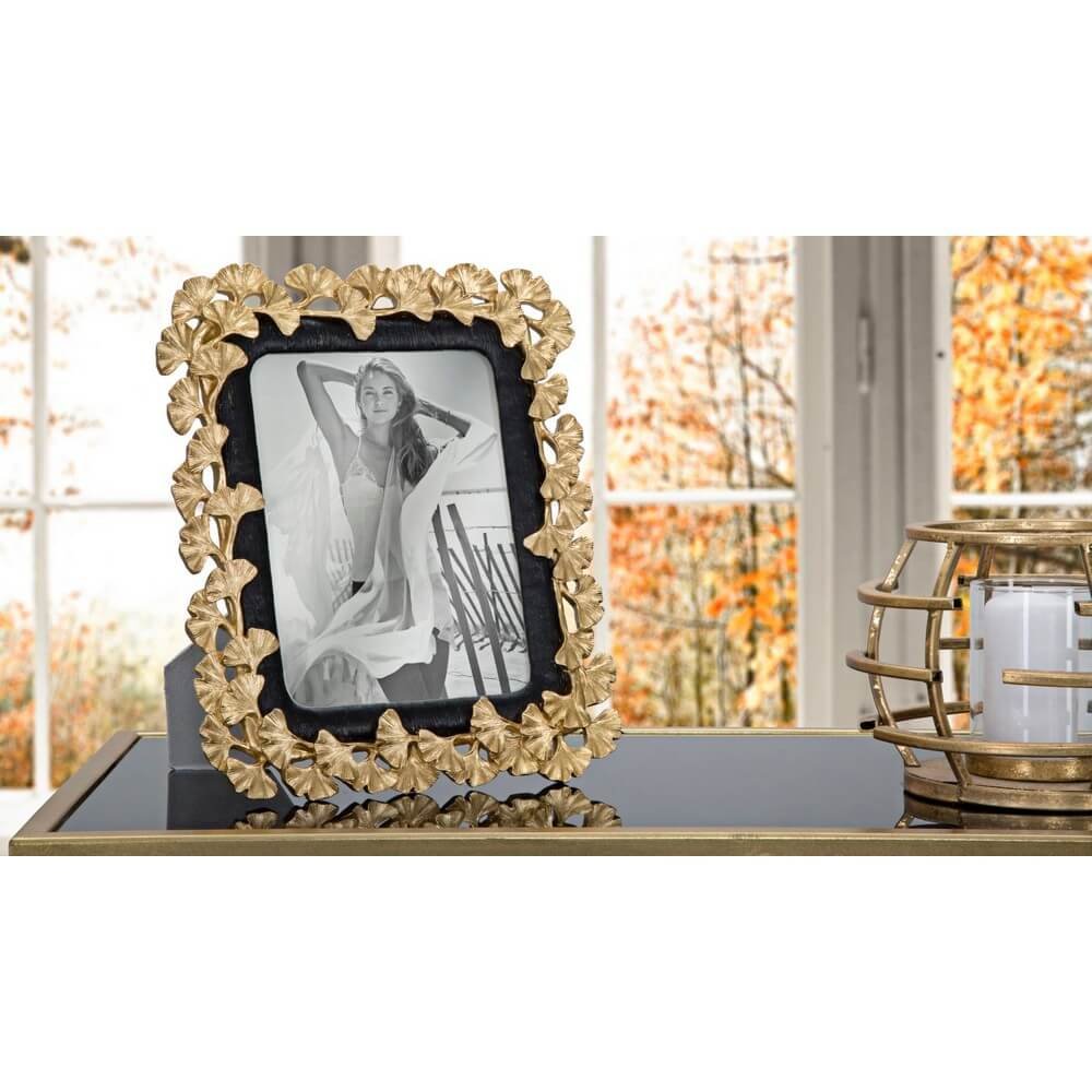 Elegante cornice in resina con decori floreali. Un tocco d’oro e nero non puรฒ mancare in una casa glam. Le cornici portafoto sono una soluzione ideale per dare uno tocco di luce all’ambiente senza sovraccaricarlo.