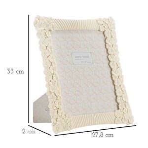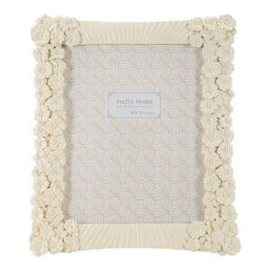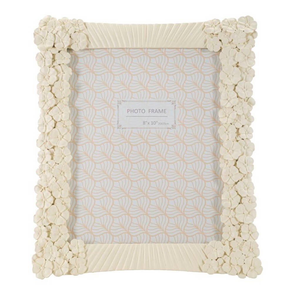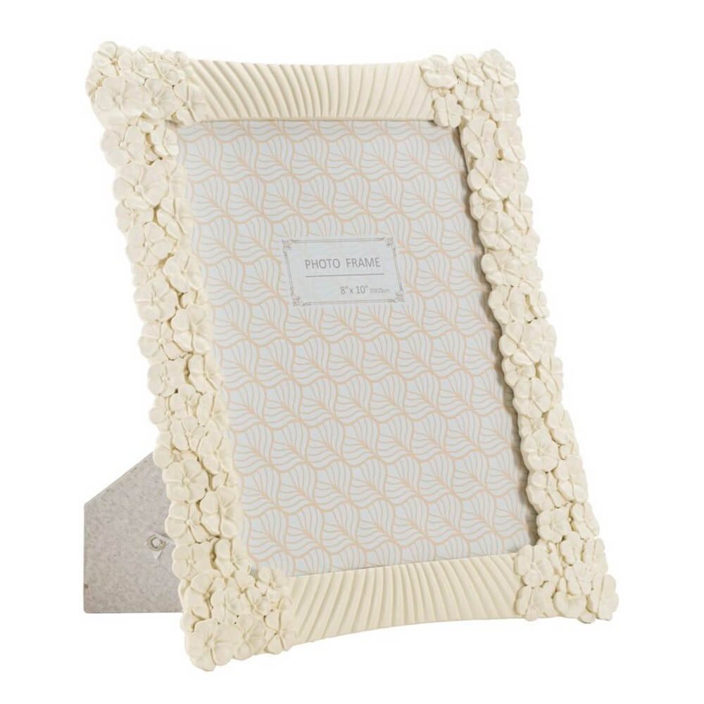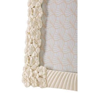 Cornice rettangolare da appoggio in resina dalle linee morbide e impreziosita da un insieme di fiorellini. Può essere posizionata sia in orizzontale che in verticale. Dimensioni foto cm 20×25.