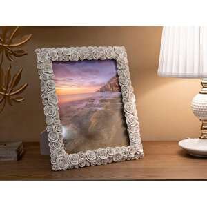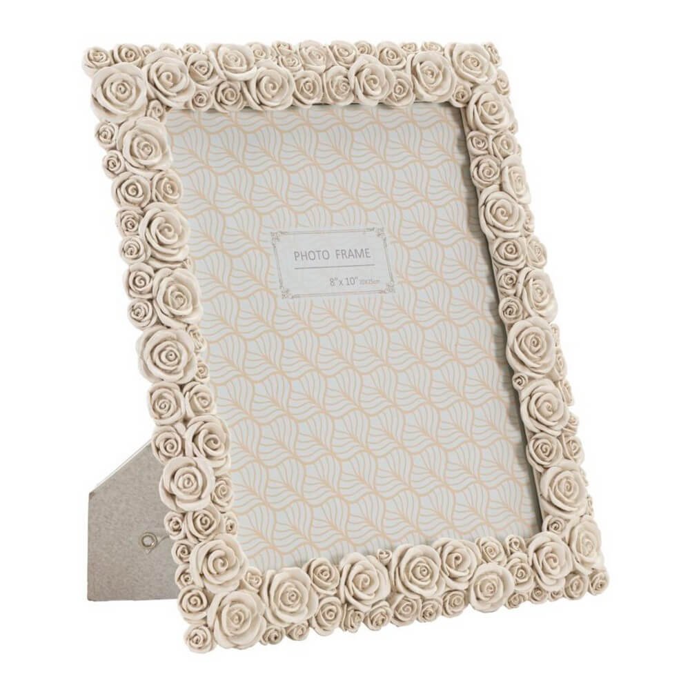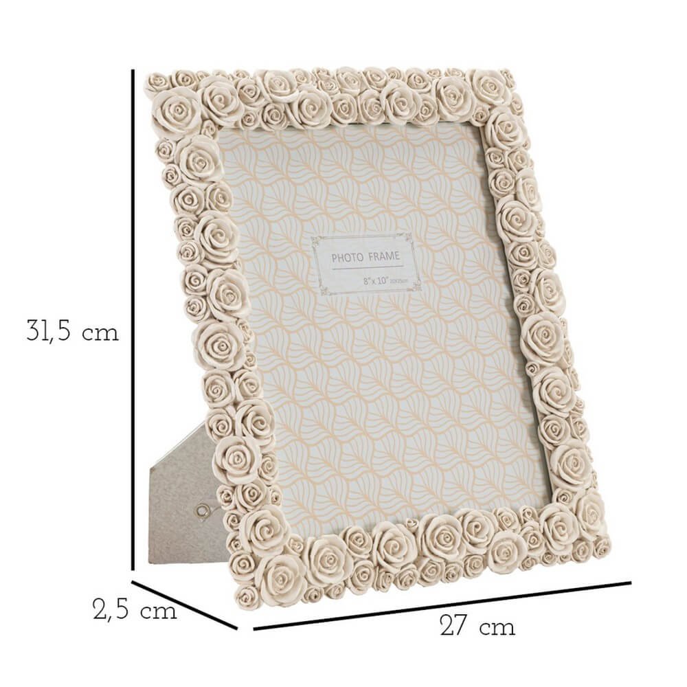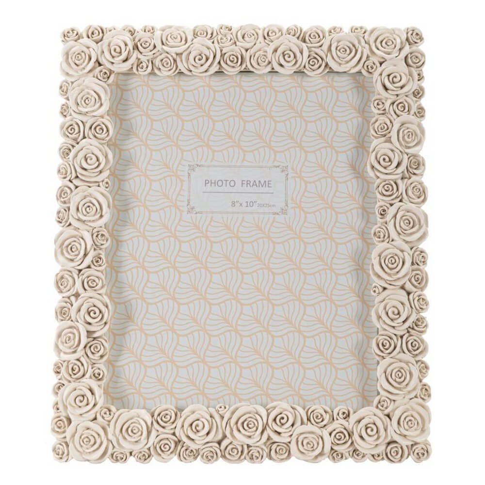 Cornice rettangolare da appoggio in resina realizzata da un insieme di roselline. Puรฒ essere posizionata sia in orizzontale che in verticale. Dimensioni foto cm 20×25.