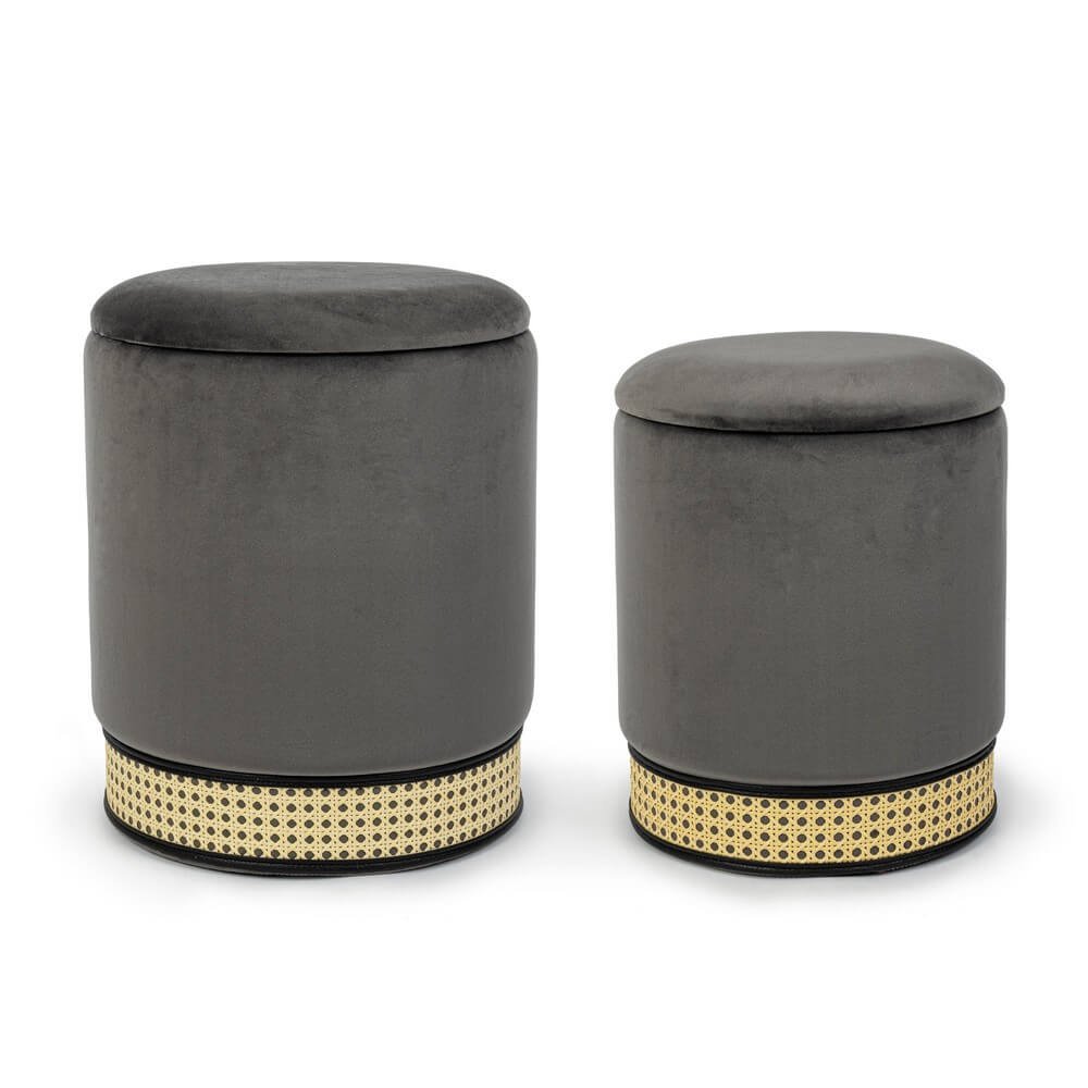 Pouf Contenitore Velluto Grigio Moderno da Interno - TAYLOR