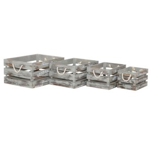 Il Set di 4 cassette in Legno cm 41x31x20 – VINNIE è la soluzione perfetta per chi desidera un tocco autentico e funzionale all’interno dei propri spazi. Realizzate in legno di paulonia, queste cassette uniscono leggerezza e resistenza, presentandosi in un elegante grigio effetto decapato che valorizza lo stile industrial. Ogni cassetta, di dimensione diversa, è decorata con stampe vintage e manici in corda robusta, che ne esaltano il fascino rustico e la praticità d’uso. Ideali come contenitori da arredo in soggiorno, studio o ingresso, si integrano perfettamente in ambienti dallo stile industriale, shabby o contemporaneo, offrendo soluzioni versatili per l’organizzazione e l’estetica. Il set VINNIE rappresenta non solo un complemento d’arredo, ma un elemento capace di raccontare una storia, donando calore e carattere a qualsiasi ambiente. Perfetto per chi cerca contenitori decorativi e funzionali, questo set si distingue per l’equilibrio tra design, praticità e stile senza tempo.