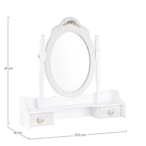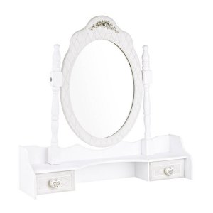 Il Set 2 Alzate con Specchio Legno Bianco Rustico da Interno – CAROLINE è la scelta perfetta per chi desidera arricchire i propri ambienti con un tocco di eleganza romantica e charme vintage. Realizzato in MDF con una delicata finitura a base d’acqua, questo complemento d’arredo da parete unisce estetica shabby chic e funzionalità grazie alle sue linee morbide e dettagli curati. Il design si distingue per lo specchio ovale incorniciato da colonne tornite e decorazioni floreali in rilievo, mentre i pomelli in poliresina a forma di cuore donano un carattere dolce e raffinato ai due pratici cassettini laterali. Il colore bianco opaco e la lavorazione effetto legno lo rendono ideale per completare camere da letto femminili, bagni luminosi o ingressi dallo stile rustico provenzale. Facile da assemblare e da appendere, il set CAROLINE esprime al meglio il suo valore in ambienti accoglienti e curati, offrendo non solo un valido specchio, ma anche un raffinato elemento decorativo che arricchisce con grazia ogni angolo della casa.